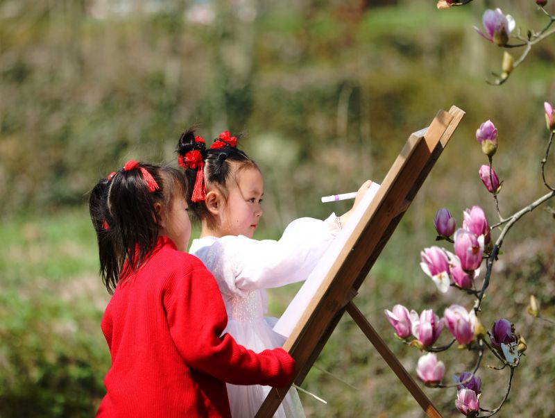江西分宜:玉兰花下绘春色