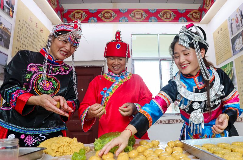 江西吉水:畲族村民制作月饼喜迎“双节”