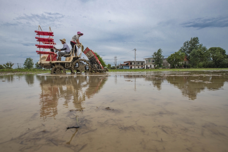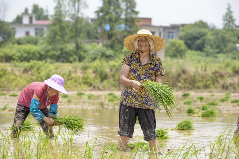 江西庐山:贫困户稻田务工 不到秋收也增收