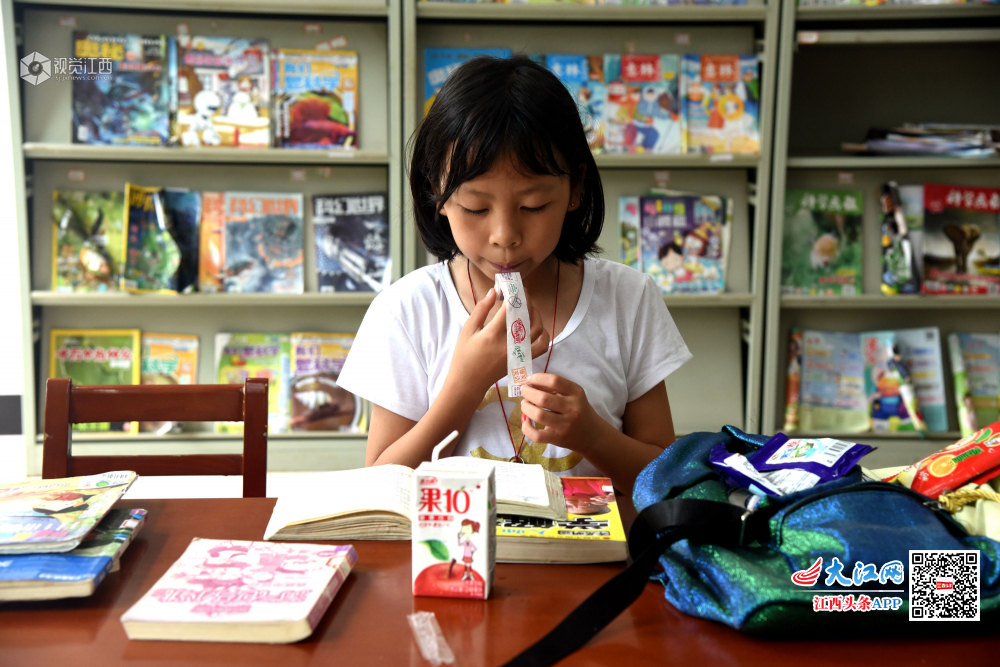 暑假期间,为方便学生们阅读书籍,江西省南丰县图书馆全天候开馆,室内空调全部开放,众多放暑假的孩子结伴来到图书馆阅读课外书籍,给放暑假的学生提供一个凉爽舒适的学习环境。