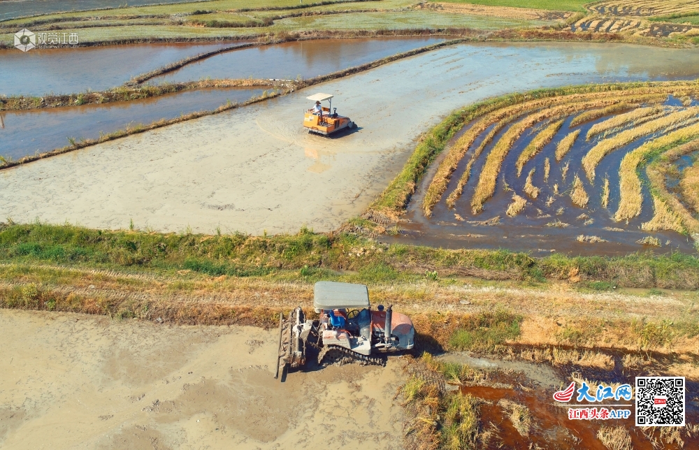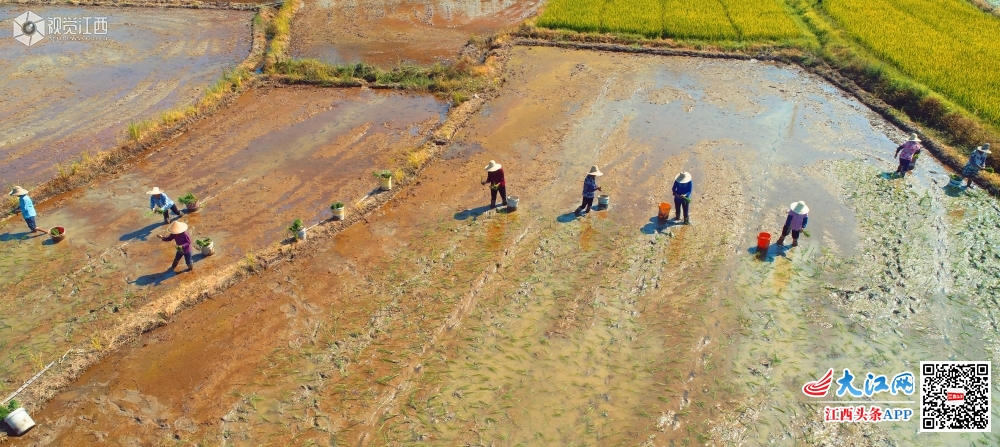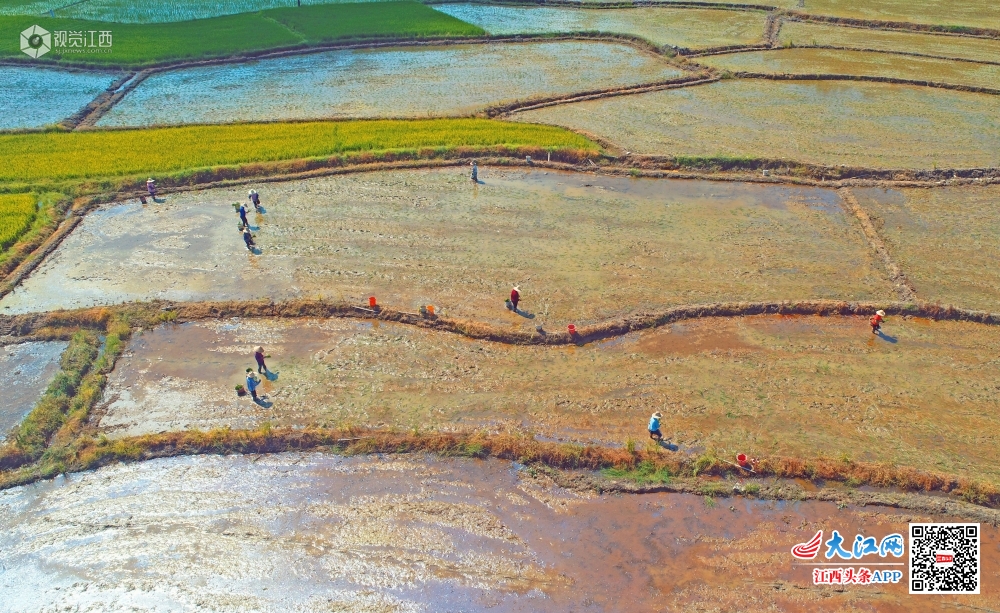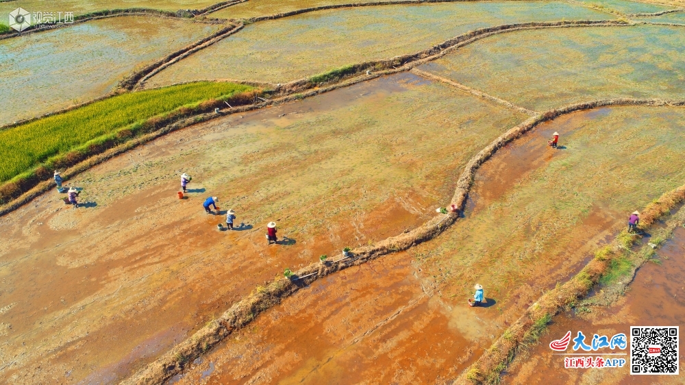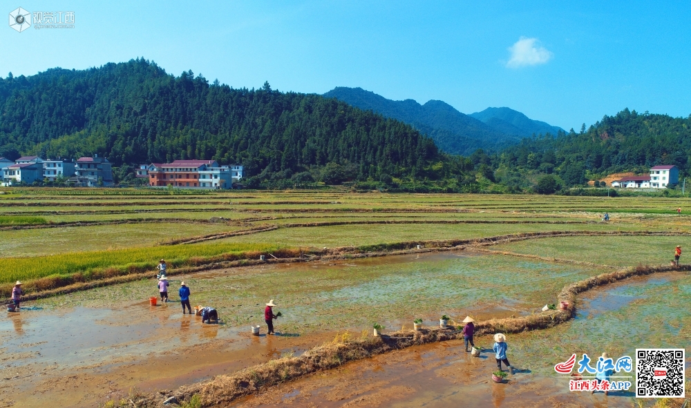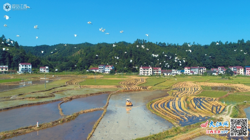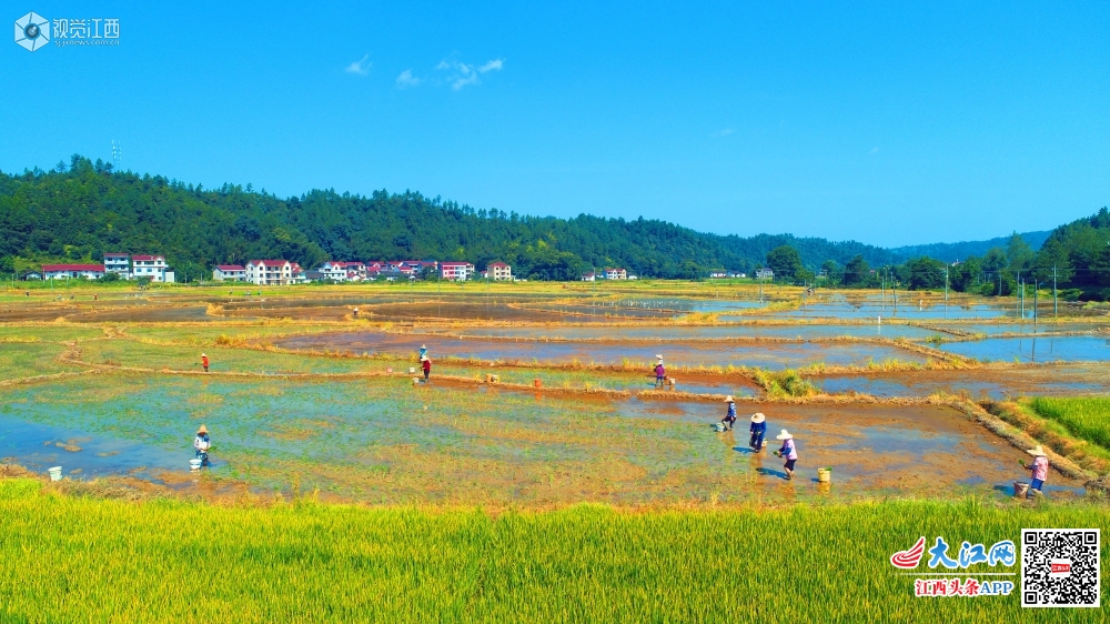 7月26日,在江西省吉安市泰和县上圯乡西冈村,农民抢抓农时在高温酷暑下的田间劳作,夏日田园一片繁忙景象。