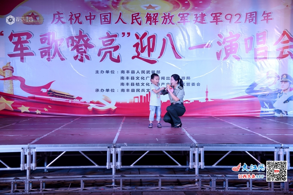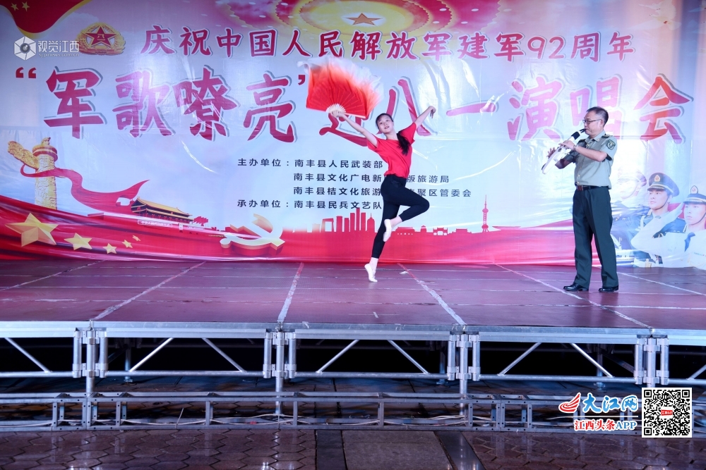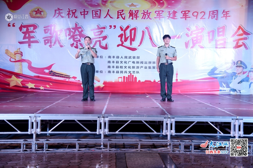 为庆祝中国人民解放军建军92周年,7月26日晚,南丰县举办庆祝中国人民解放军建军92周年——“军歌嘹亮”迎八一演唱会。县民兵文艺队的演员们以具有鲜明时代气息、独特军旅风格和高雅艺术品位的节目,热情讴歌了新时代、新阶段军民团结的鱼水深情。