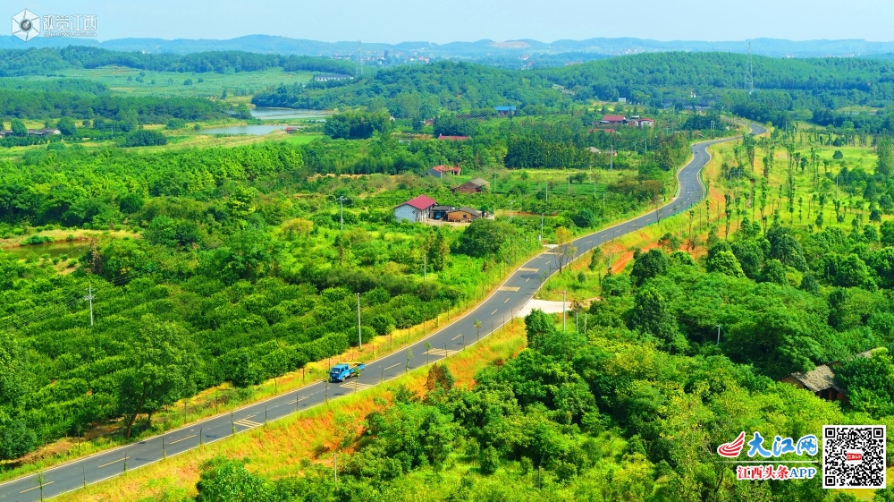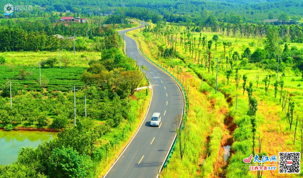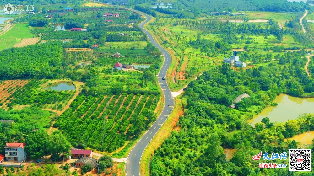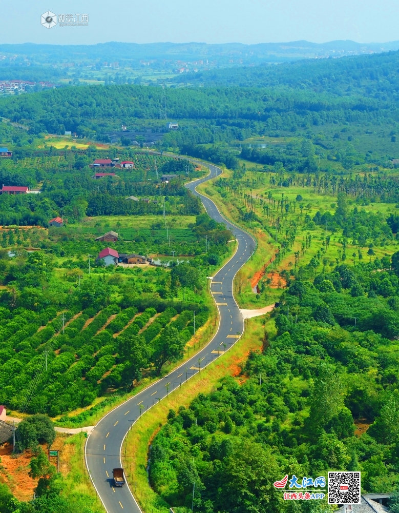 8月1日,航拍江西省吉安市泰和县马市至螺溪四好农村公路,蜿蜒曲折穿越村庄,蔚为壮观。