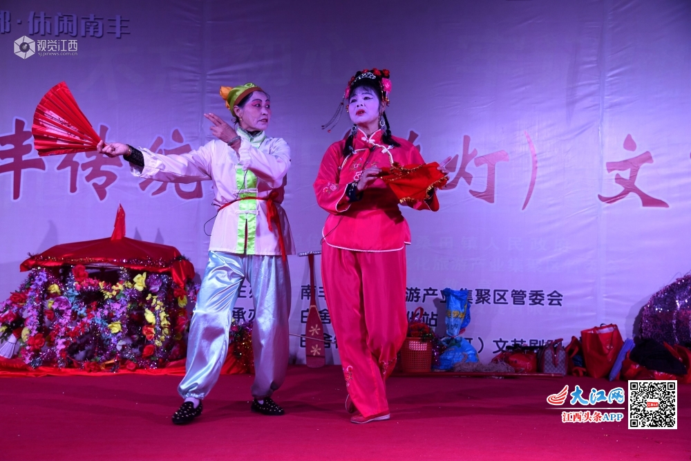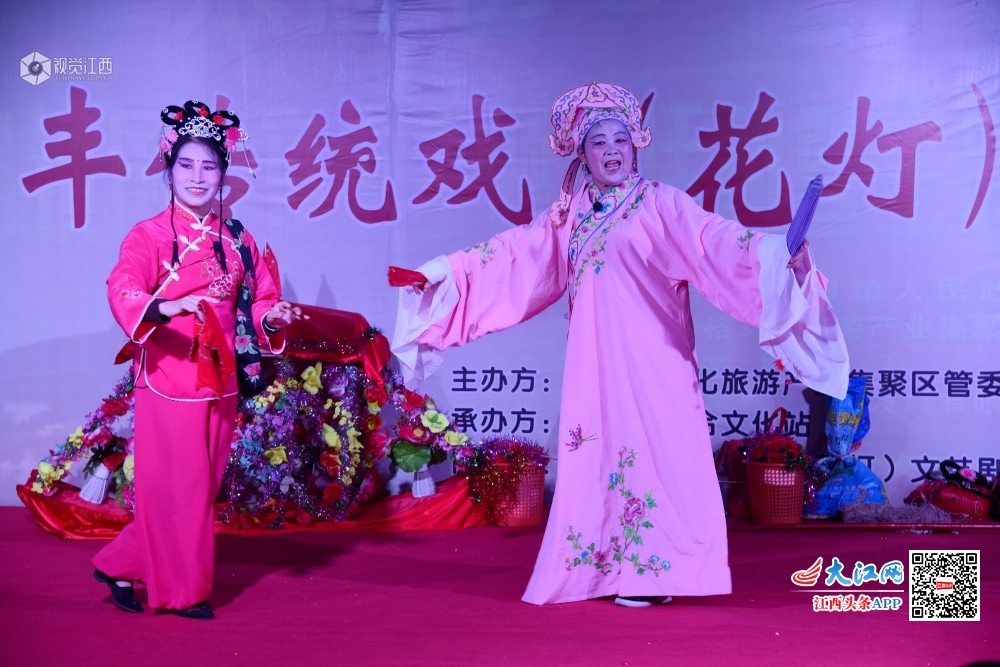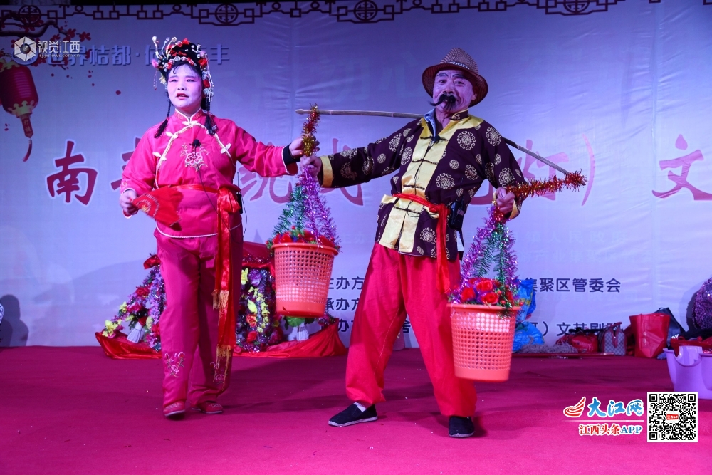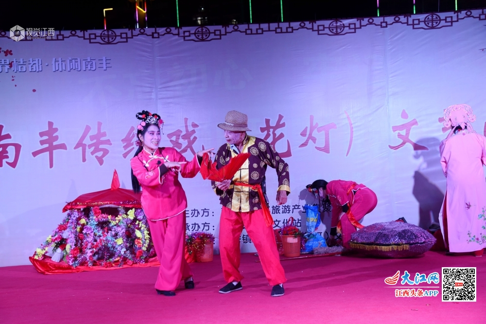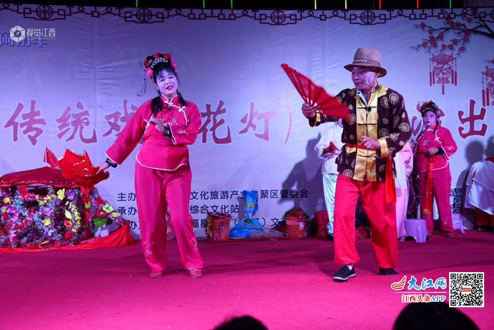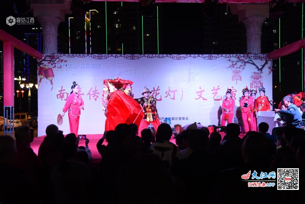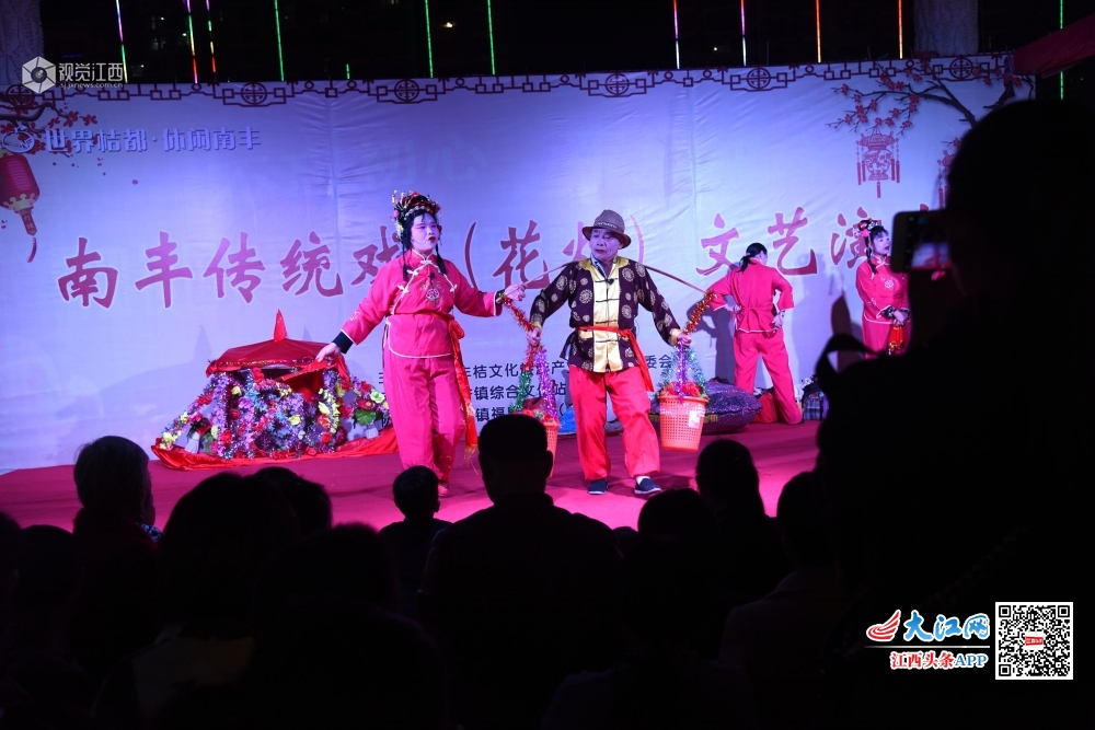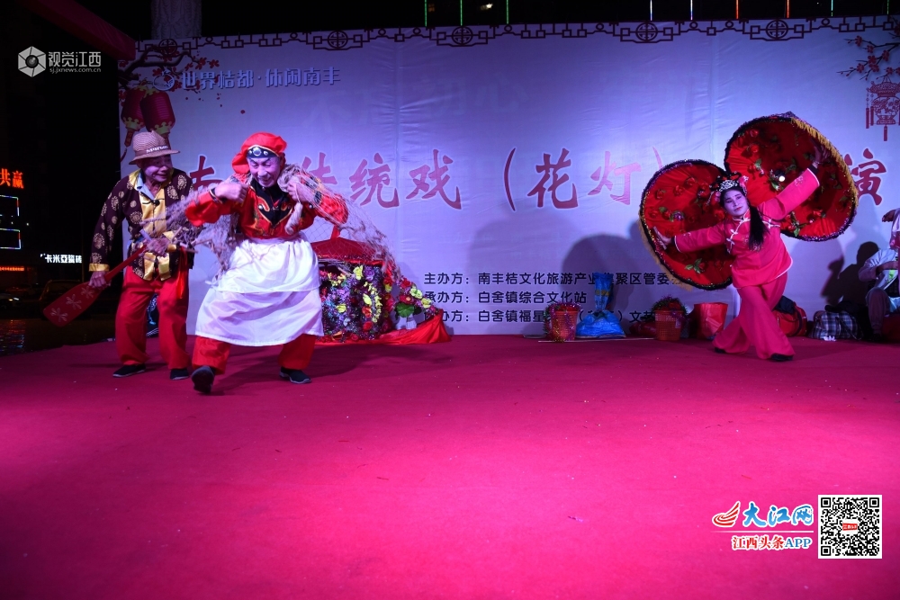 2019年11月24日晚上,江西省南丰县国安夜市舞台上,南丰传统戏(花灯)文艺演出在这里举行,来自白舍镇福星采茶(花灯)文艺剧团的演员们在这里表演跳花灯,让县城的老百姓乐享文艺大餐,他们精彩的表演,获得观众们的阵阵掌声。