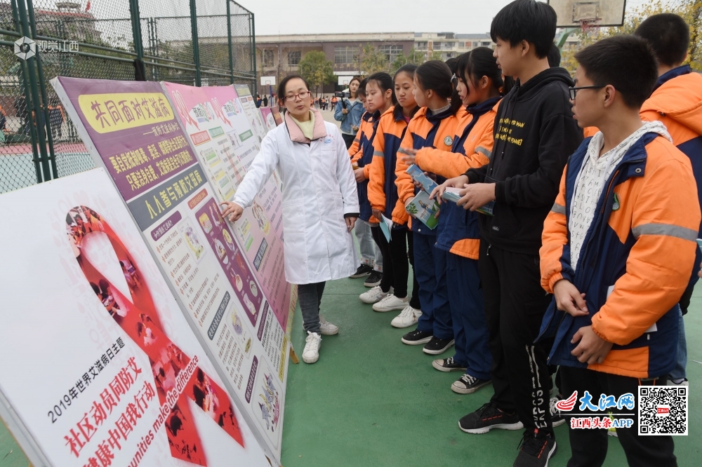2019年11月29日,江西省南丰县预防“艾滋病”宣传走进南丰二中,以提高青少年学生“艾滋病”防治知识知晓率,增强预防技能。