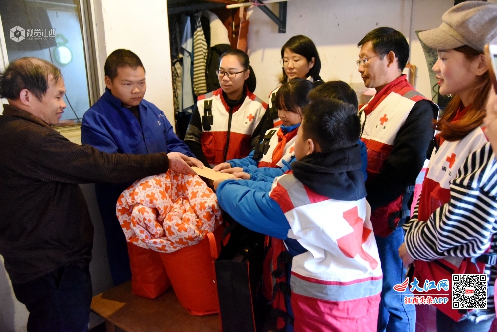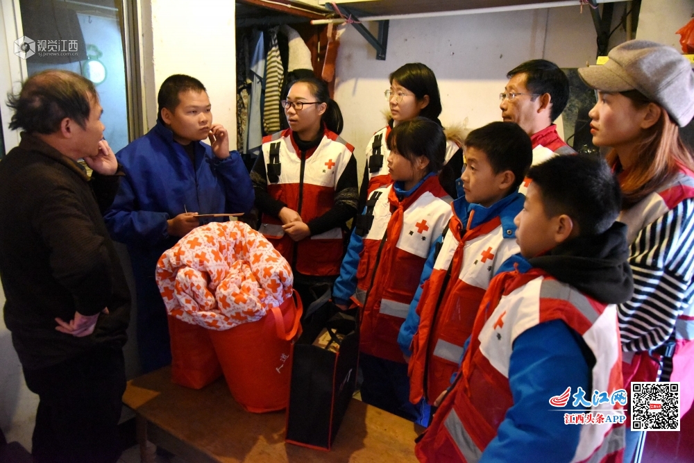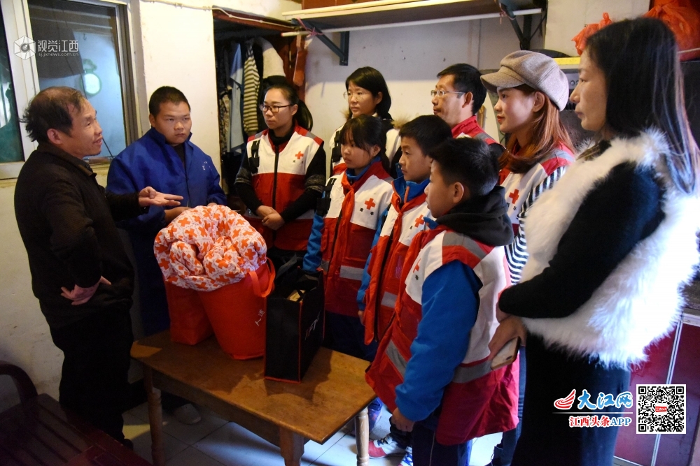 2019年12月4日,江西省南丰县桔都小学红十字会的志愿者们来到琴城镇胜利路社区一名困难群众家中,为困难群众送去棉被和慰问金,以实际行动迎接“12·5”国际志愿者日的到来。
