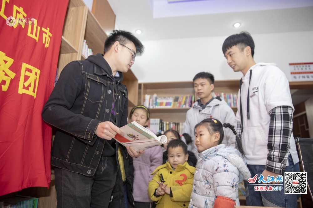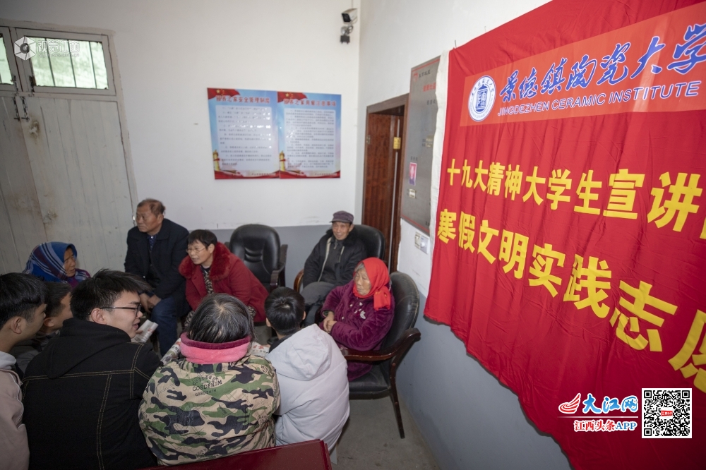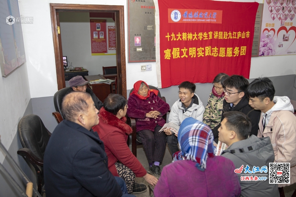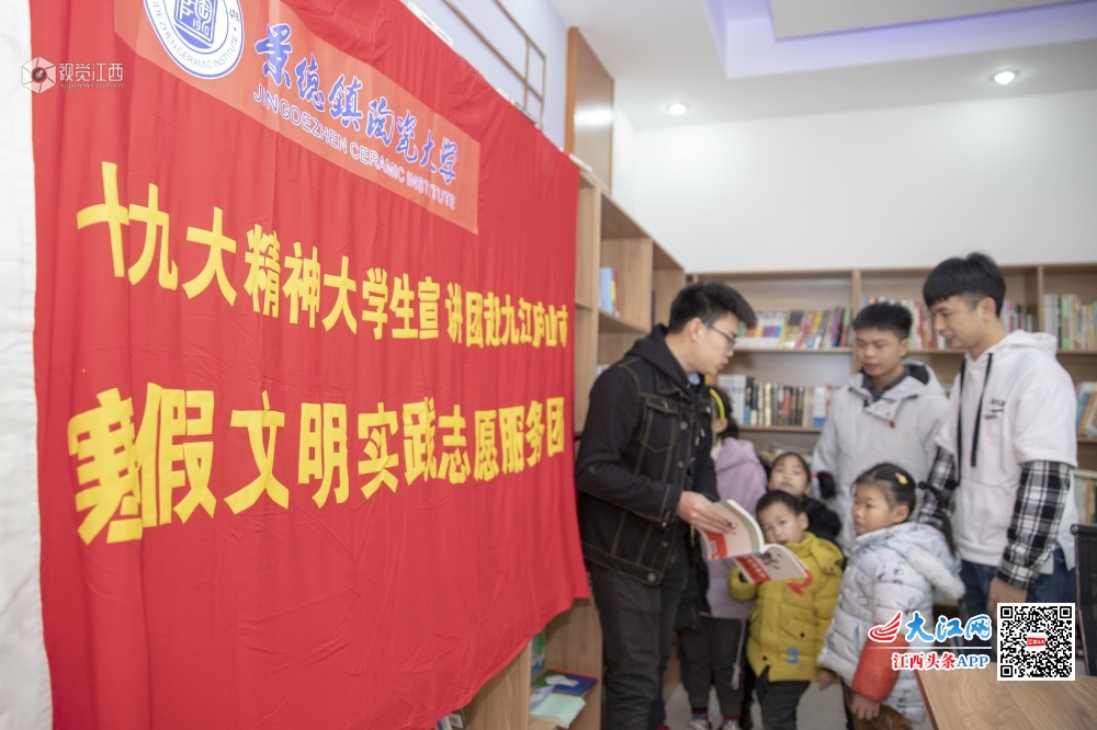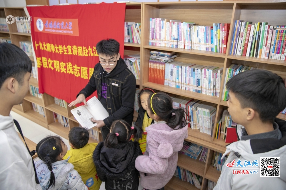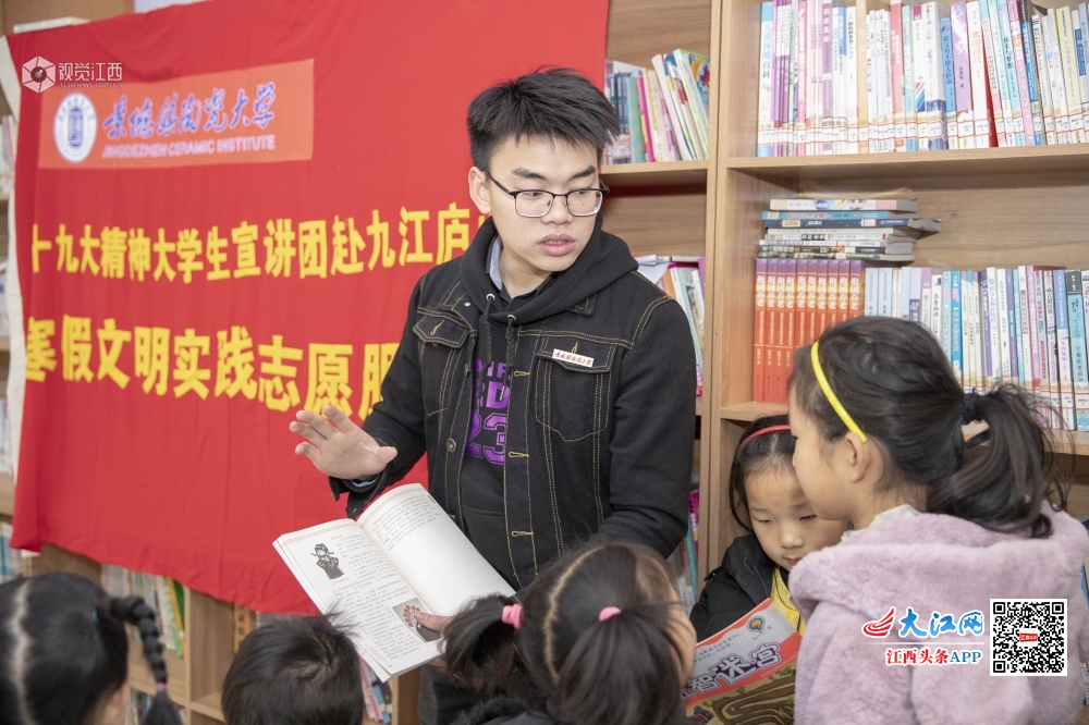 1月16日,江西庐山市温泉镇,来自景德镇陶瓷大学的十九大精神大学生宣讲团为当地群众宣讲十九大精神。 宣讲团成员全部都是在校大学生,他们为小朋友们讲垃圾分类、讲戏曲脸谱,增强孩子们的生态环保意识和文化自信。
