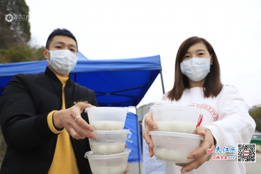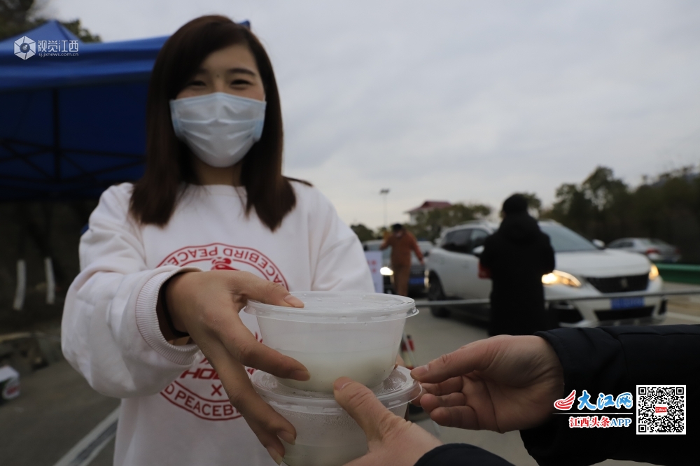 2月8日元宵节,嫁到江西省庐山市海会镇的山东妹子颜娇和丈夫一起将精心准备的汤圆和水饺送到环山公路海会段的防疫卡点上,为守卡的干部们送上元宵节的祝福。