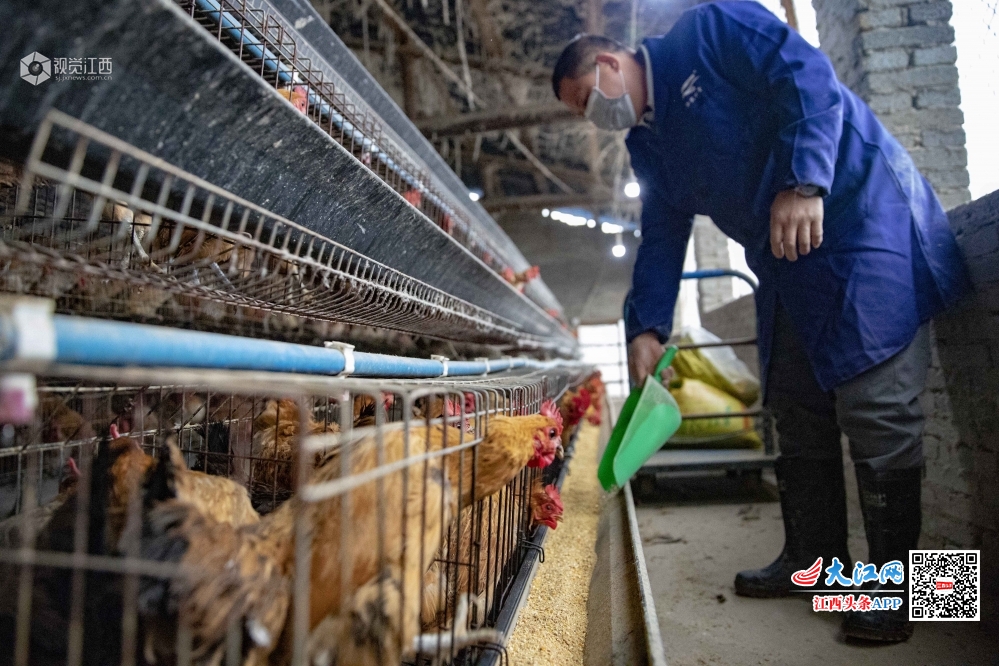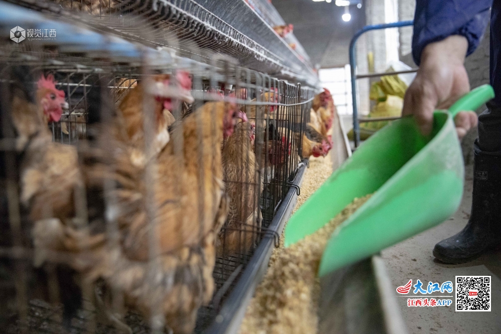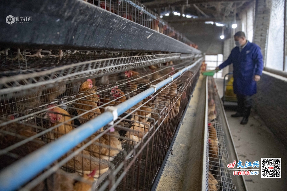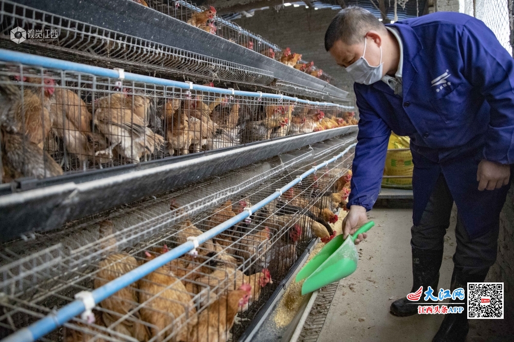 2月15日,江西庐山市白鹿镇梅溪村,村民黄金水正忙着给自己家养殖的5000羽蛋鸡喂饲料。当地党委政府在抓好疫情防控的同时,千方百计,保障农副农品正常生产和市场供给。针对养殖户,在严格执行相关防疫措施的前提下,保证饲料的供应。同时,每周安排两天时间,由村干部陪同将产品运出村进行销售。