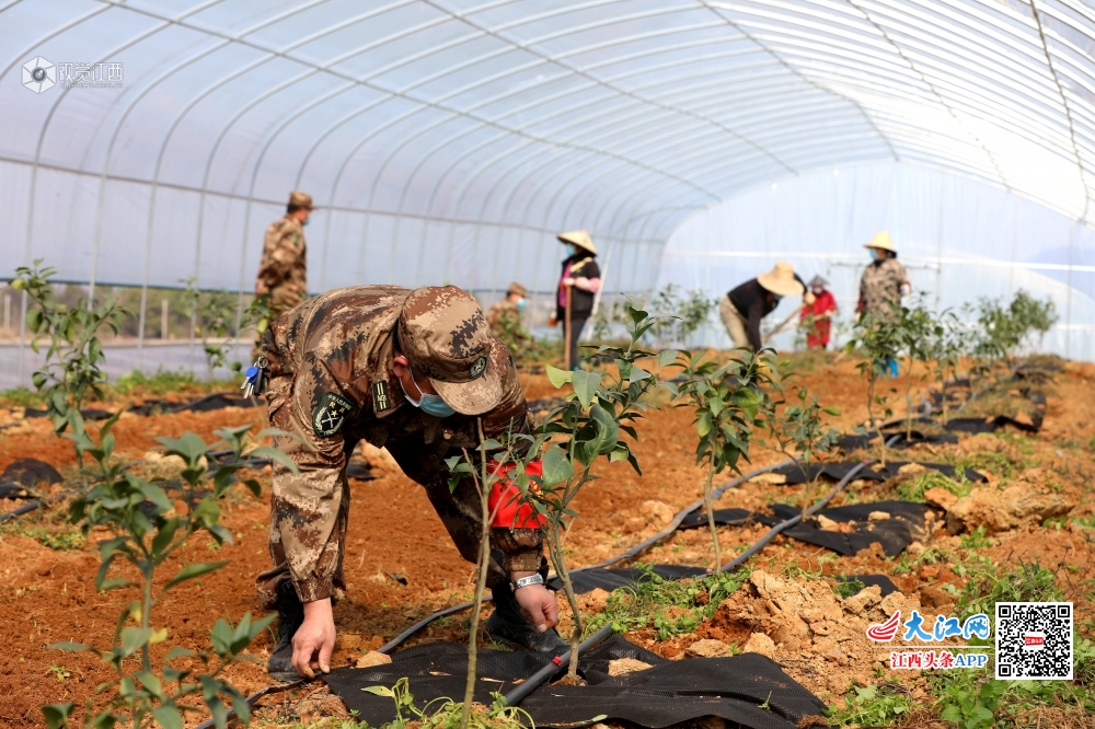 2月17日,分宜县分宜镇组织部分民兵在该镇水东村扶贫产业果冻橙基地帮助村民搬运农用物资、清理基地杂草。随着新冠肺炎疫情的有效控制,作为平时为民,战时为兵的分宜镇546名基干民兵,统一指挥,科学调度,在做好医学观察隔离点执勤、重要区域卫生消毒等疫情防控的同时,抓住当前晴好天气,加大农业生产和脱贫攻坚帮扶力度,做到疫情防控和产业发展帮扶两不误。