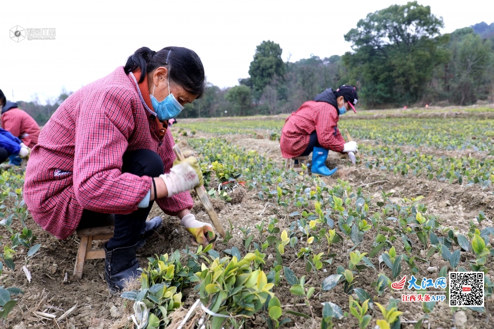 2月19日,正值雨水时节,江西省分宜县分宜镇角元村10多位村民正在昌山林业种苗基地种植油茶苗,一派人勤春早的繁忙景象。分宜县林业部门在做好疫情防控的同时,抢抓造林绿化好时机,组织各林业公司和村民走向荒山荒坡及苗木基地植树造林、绿化家园。