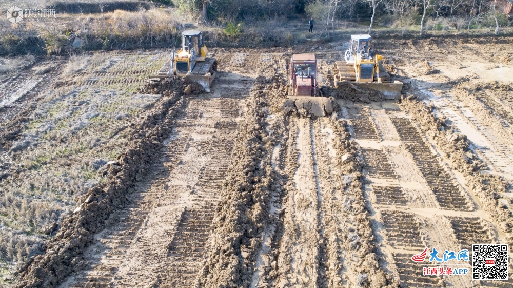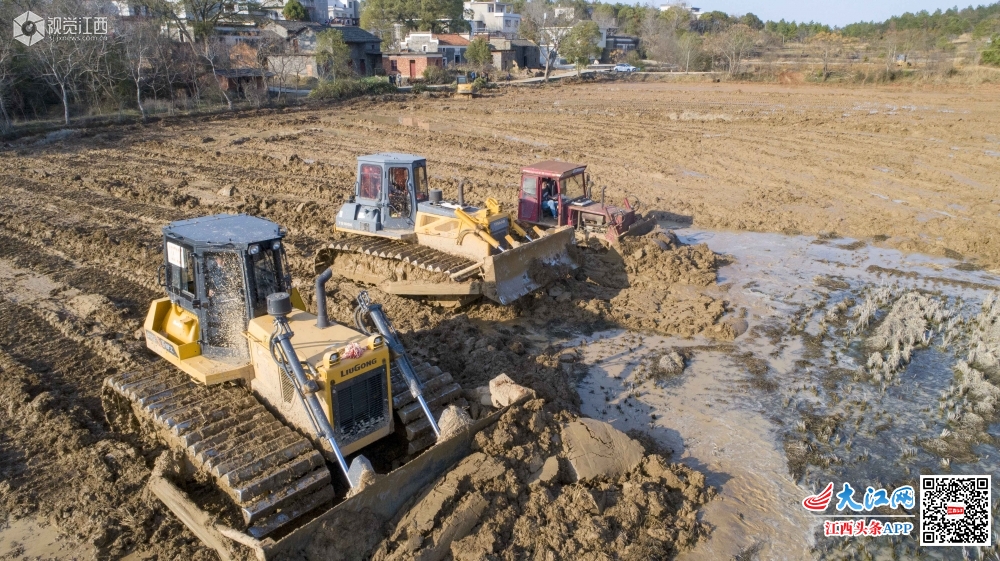 2月20日,江西庐山市高标准农田里几台机械正在同时施工作业,拓宽机耕道、平整田块、修整沟渠,将过去的山坡地改造成农田等。 庐山市2019年高标准农田建设共计5300亩,共涉及5个乡镇、17个村。针对当前特殊情况,庐山市一抓开工复工人员的信息采集,防疫管理;二抓工程进度,尽量采取机械化施工;三抓质量,严格按照规划进行建设,确保项目保质保量如期完成不误农时。通过高标准农田改造,这些田地将更加适应机械化作业,灌溉更加合理,为今年粮食增产增收打下基础。