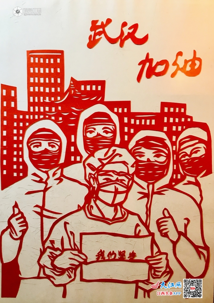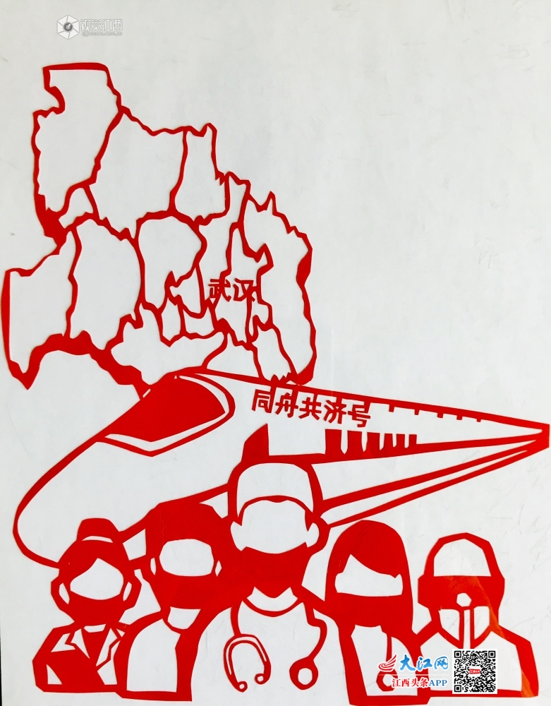 2020年2月21日,江西省南丰县委老干部局副局长方锦静的又一幅“抗疫”剪纸作品《同舟共济号》完成,这是她自2月4日以来创作的第六幅“抗疫”剪纸作品。