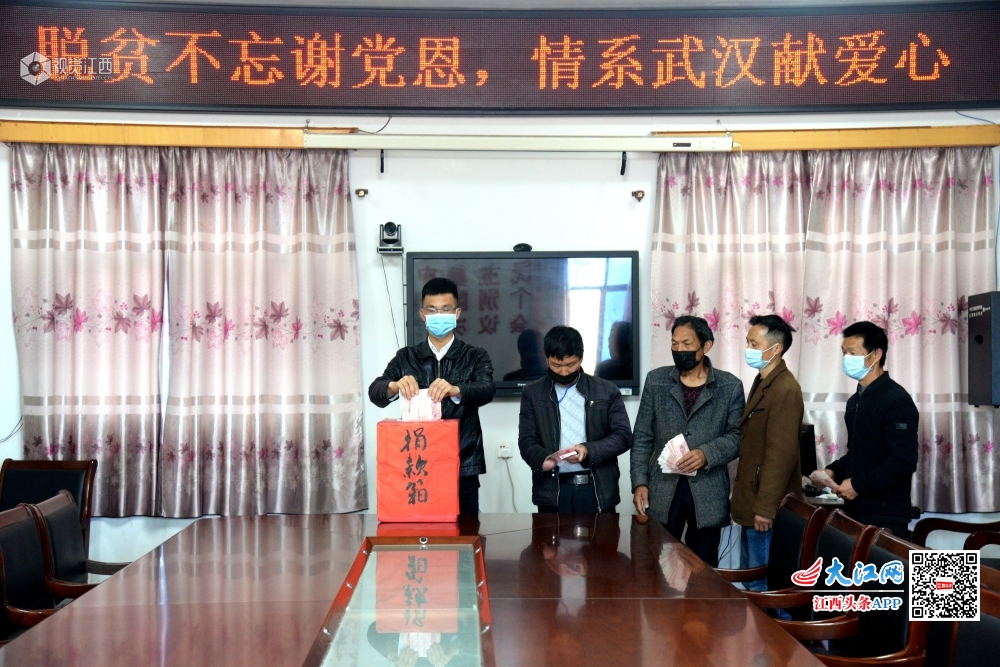 2020年2月26日,江西省南丰县市山镇新冠肺炎联防联控指挥部举行“脱贫不忘谢党恩 情系武汉献爱心”捐款仪式,5户已脱贫的精准扶贫户代表在捐款仪式上捐款。