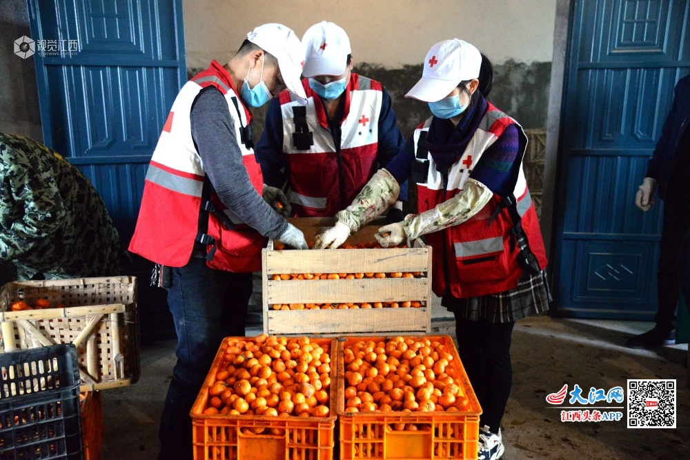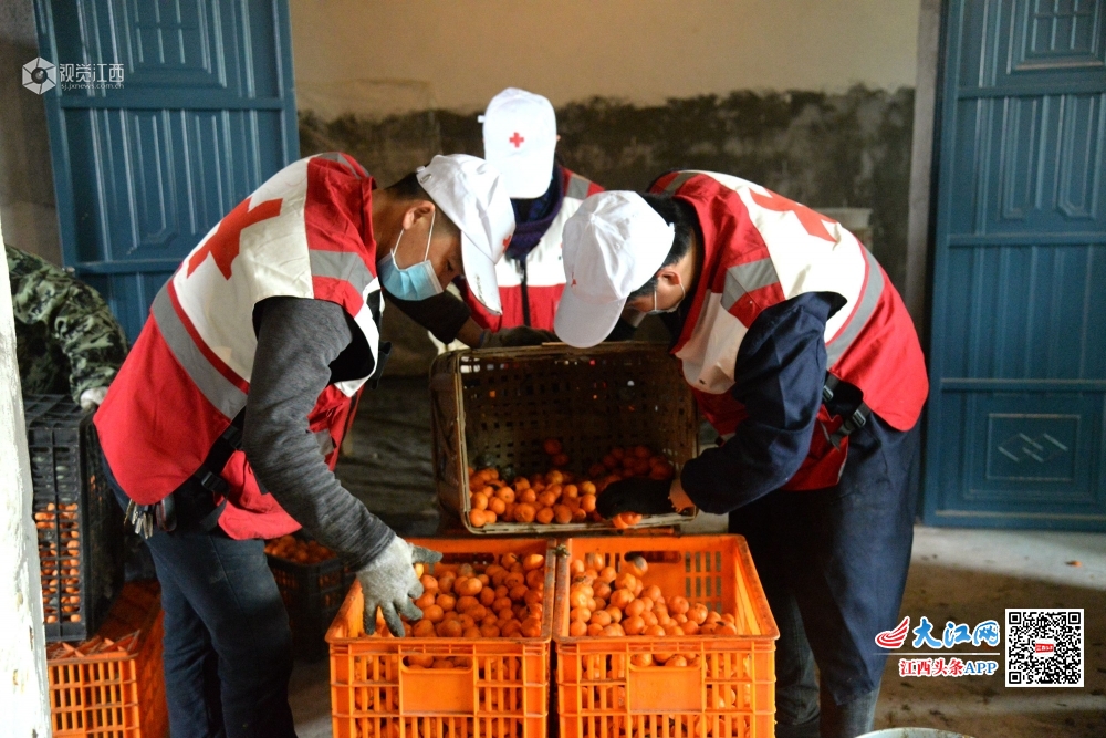 2020年2月28日,江西省南丰县红十字会组织志愿者来到挂点帮扶的市山镇官庄村贫困户家中,帮助分拣整理蜜桔,准备销往南丰县吉品生物科技有限公司。