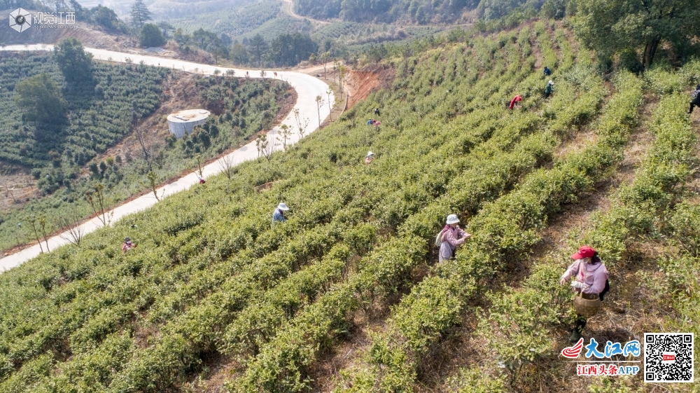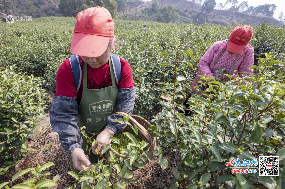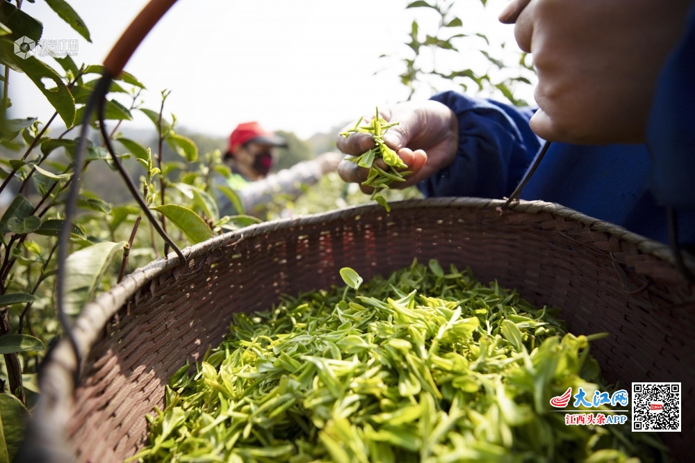3月5日,惊蛰,在春雨和庐山云雾的润泽下,江西庐山市23000亩茶树长势喜人。茶农们趁着春光采摘嫩芽,今年第一批庐山云雾茶将会在清明前上市。