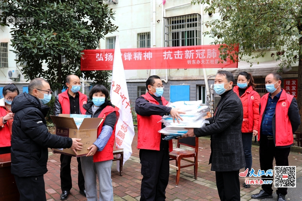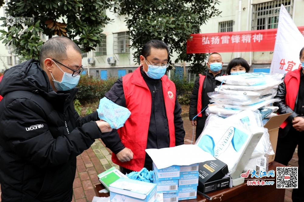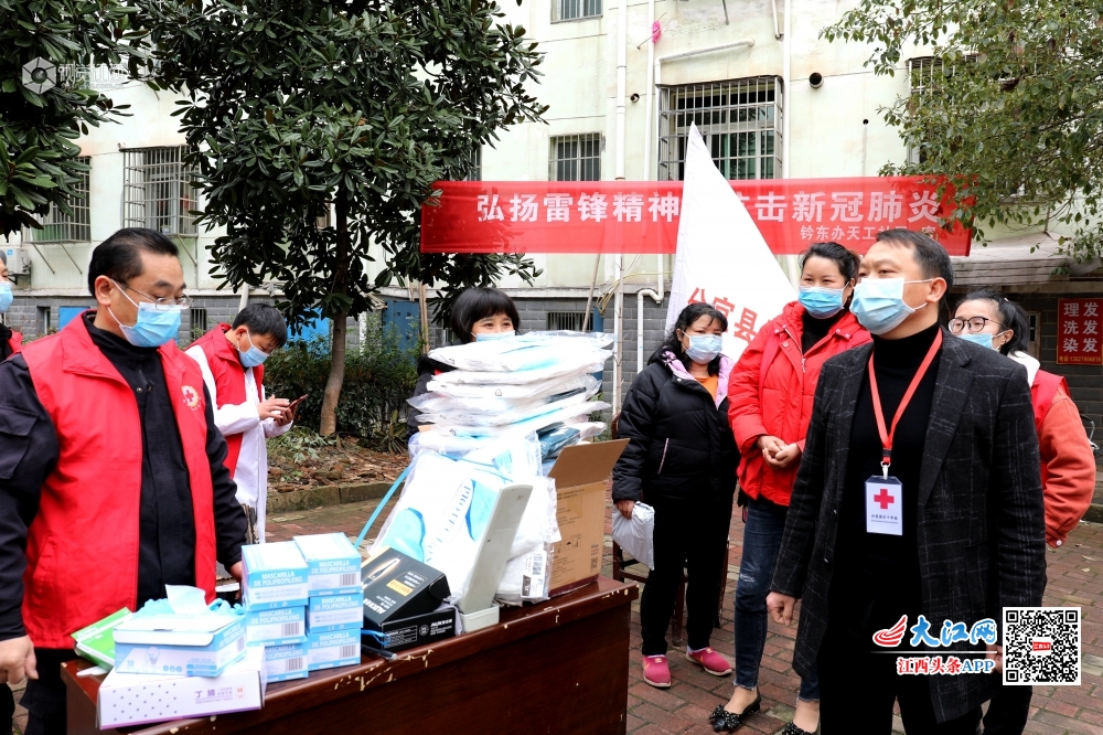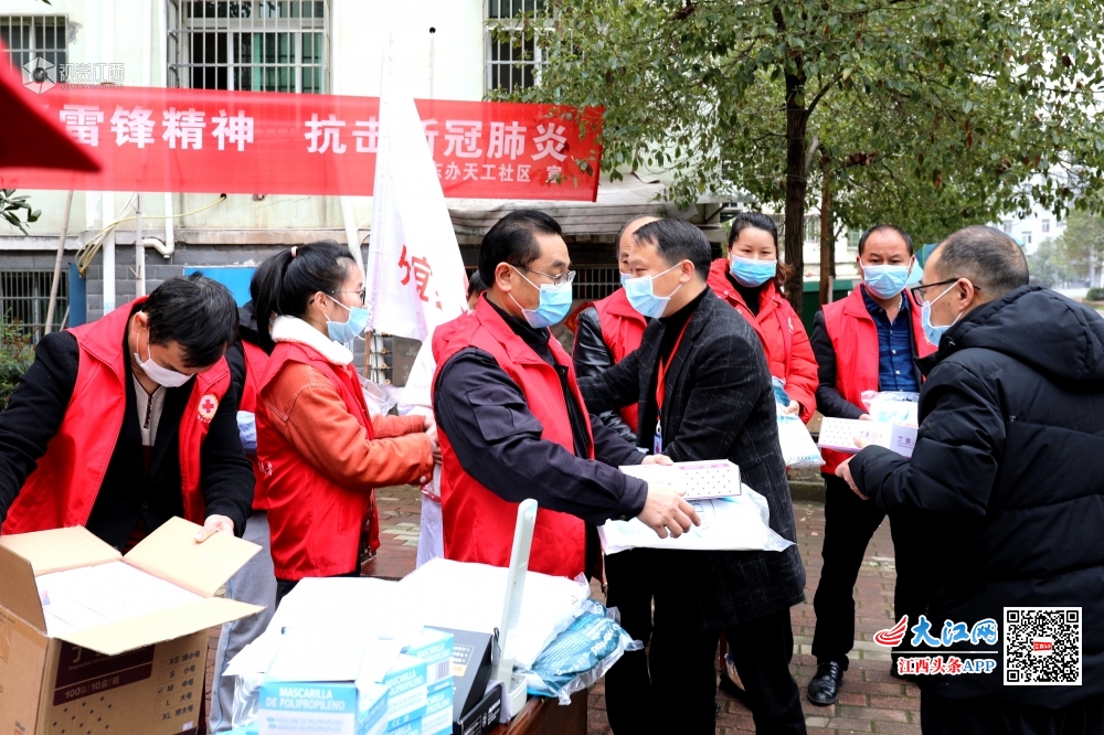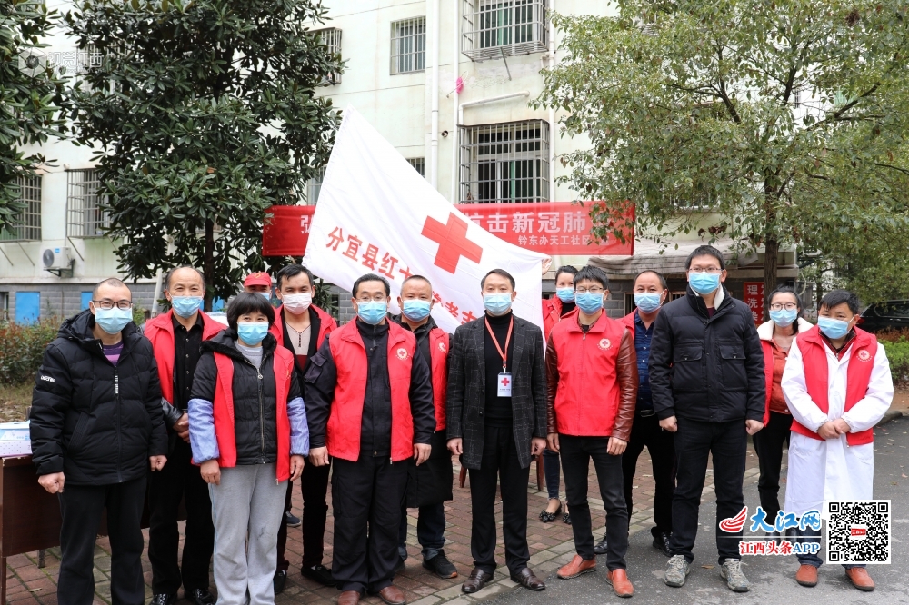 3月5日,江西省分宜县红十字会来到钤东街道天工社区沁湖丽园小区,为社区防控点执勤的一线志愿者赠送口罩、手套、防护服、医用帽子等防疫物资,向他们送上一份关爱。