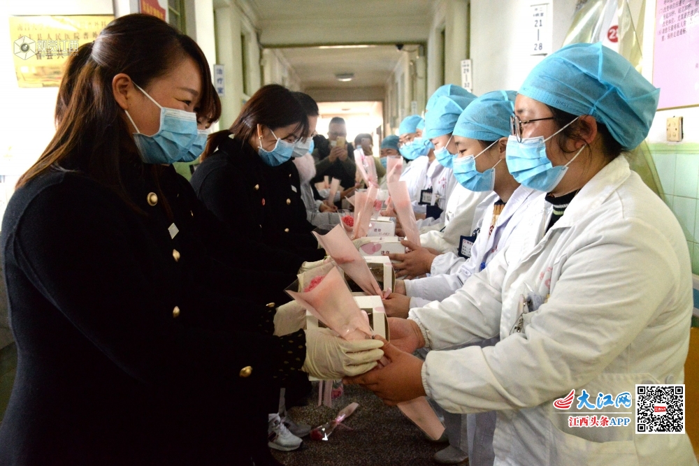 2020年3月8日,由江西省南丰县南丰在线与聚福阳光城(公园里)、南丰爱心驿站共同发起,并联合南丰县委宣传部、县妇联、县红十字会开展的“三八国际妇女节爱心公益活动”走进县人民医院、县中医院,看望慰问抗疫一线的女性医护人员,给她们送上节日的问候和祝福。