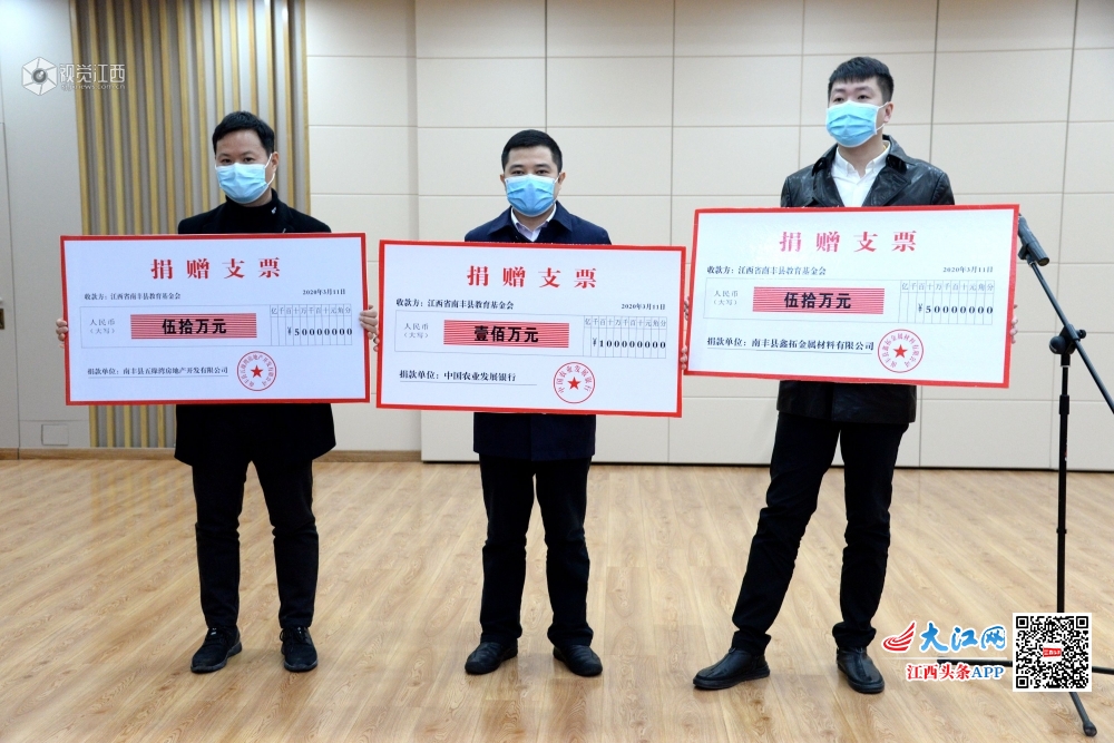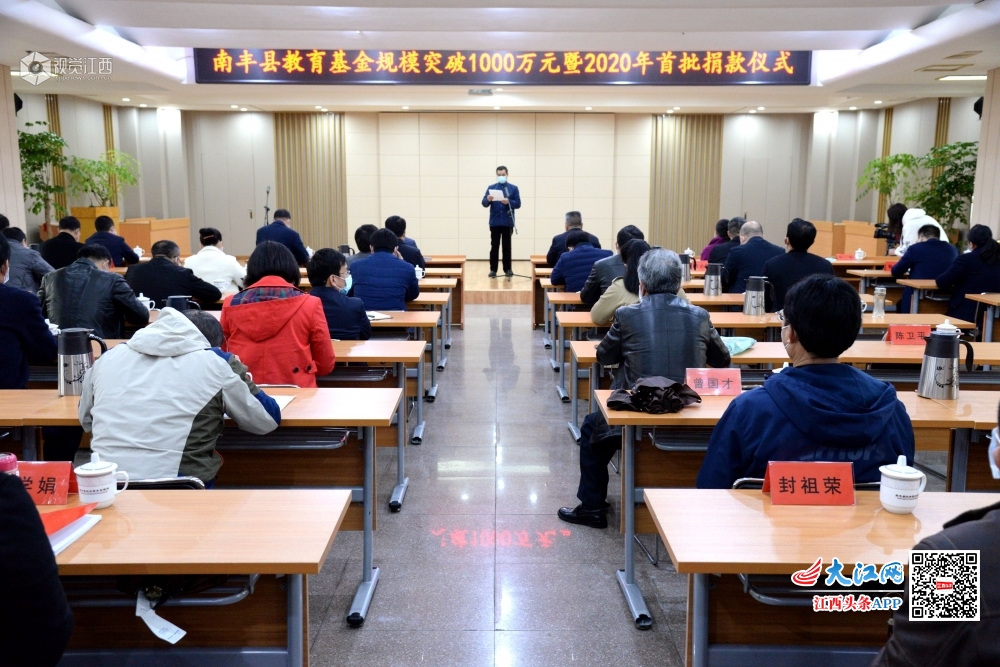 2020年3月12日,江西省南丰县举行教育基金2020年首批捐款仪式,截止3月12日,该县教育基金规模首次突破1000万元。