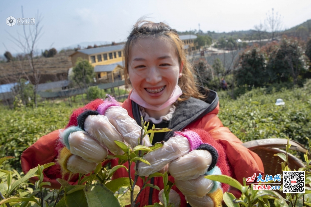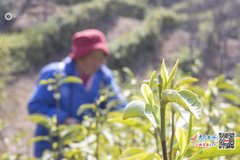 3月13日,春光明媚,江西庐山市茶农忙趁春光采春茶。