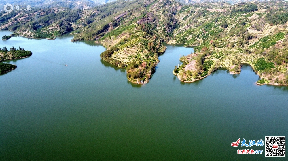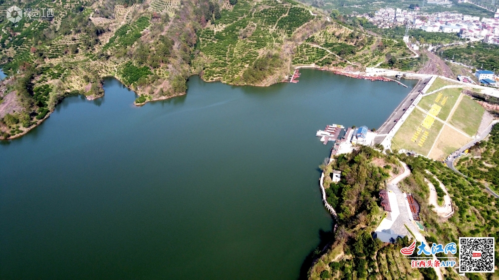 2020年3月15日,无人机航拍下的江西省抚州市南丰县市山镇包坊村“观必上乐园”,新农村与橘园相互映衬,一派生机盎然的景象。