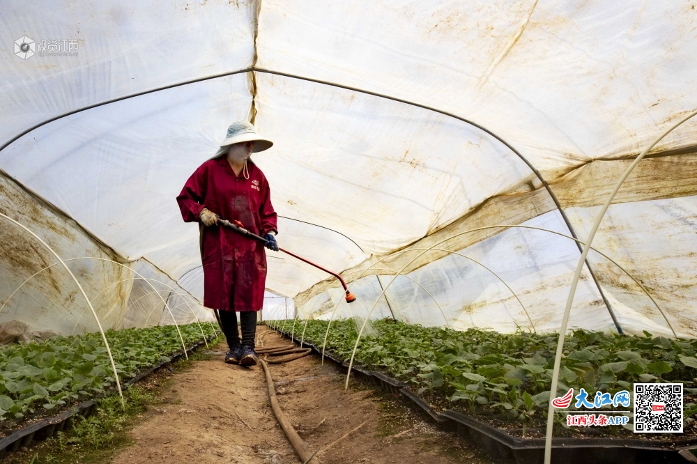 3月17日,江西省庐山市五老峰下海会镇,“燕窝之春”家庭农场蔬菜基地,农民在田里春管春耕不误农时。庐山市一手抓新冠肺炎疫情防控,一手抓农业生产,鼓励农民分批次分时段下田劳作,力争农业增产增收。