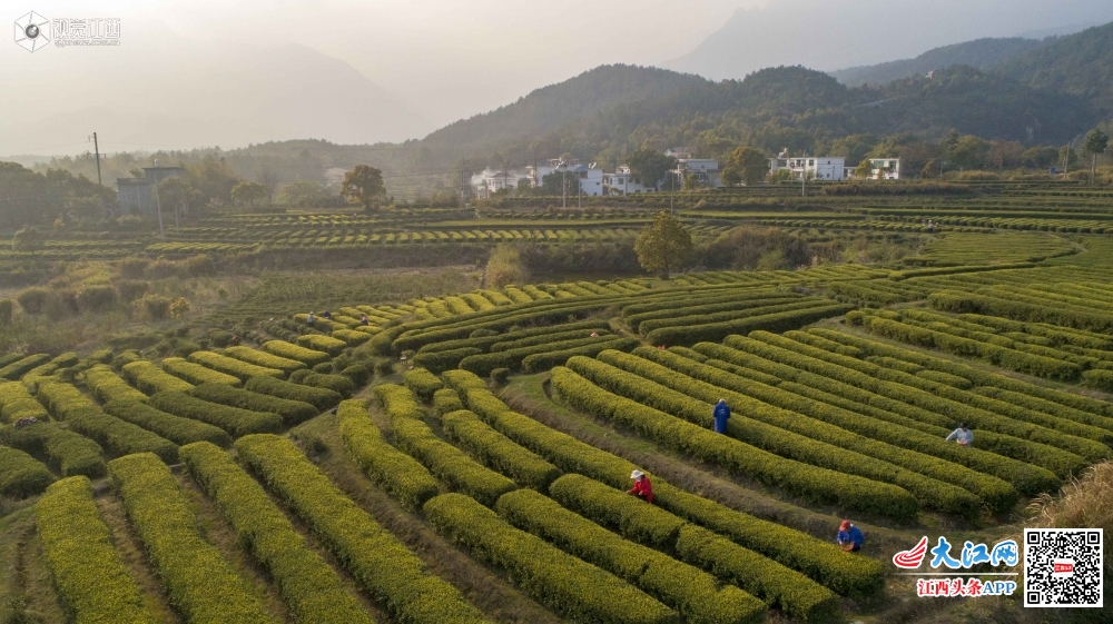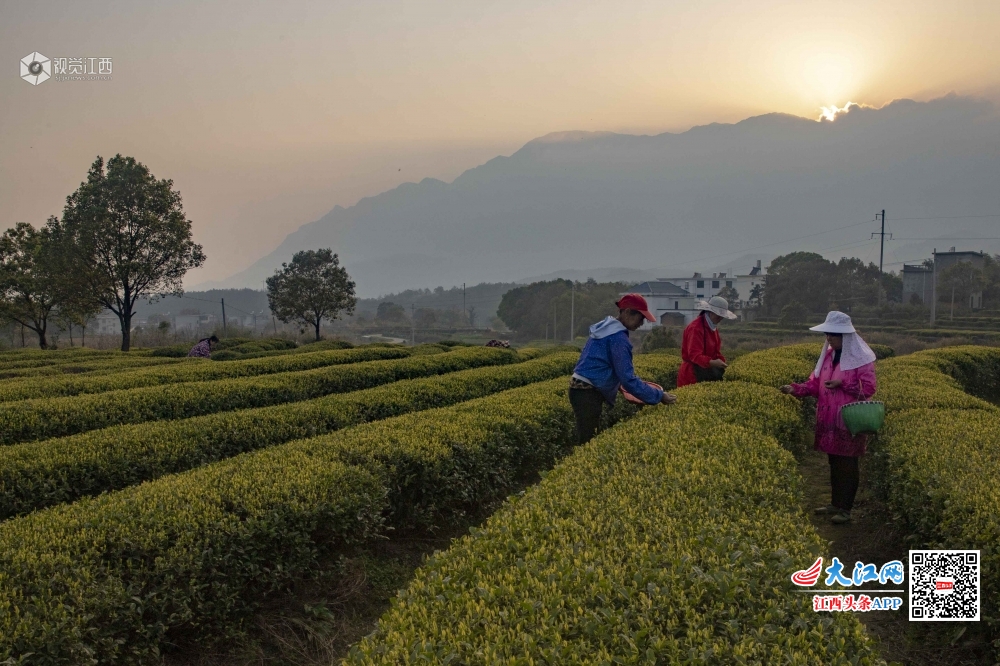 江西庐山市白鹿镇玉京村茶园在夕阳下熠熠生辉。根据市场需求,茶农们抢在清明节前采摘加工新茶。 庐山市自古便是茶叶优质产区,近年来结合扶贫攻坚、低产林改造、防火林带建设不断扩大庐山云雾茶种植面积。清明将至当地2万余亩茶园长势喜人。种植加工茶叶已经成为当地精准扶贫的重要产业。