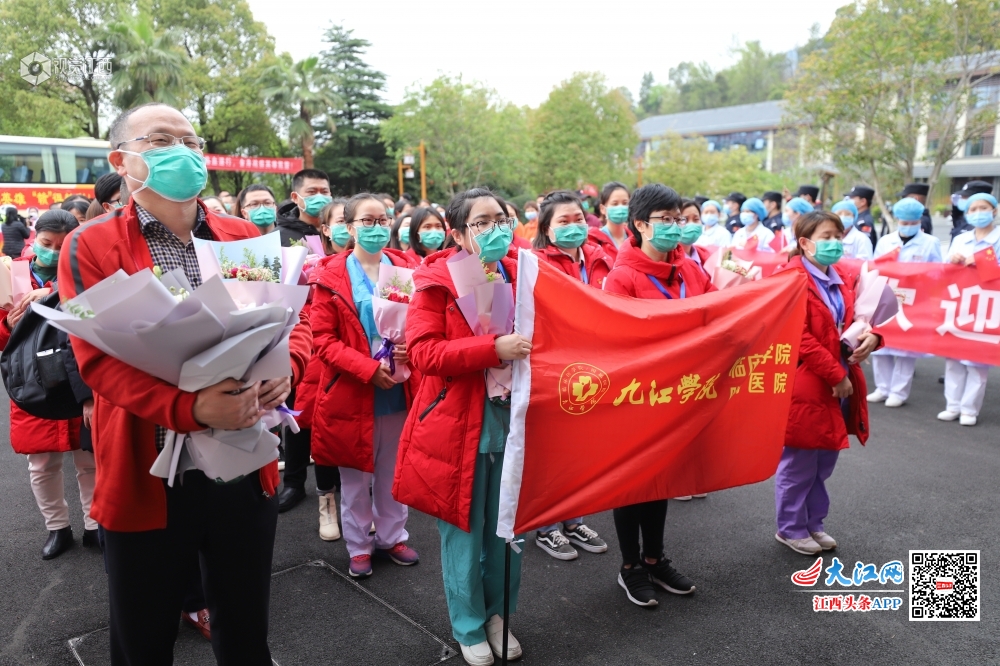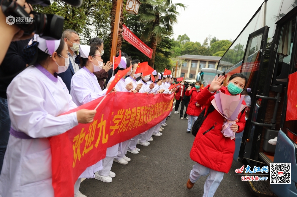 3月22日13时30分,载有江西省援助湖北医疗队85名队员的车队,抵达目的地庐山市汤太宗温泉酒店,开始14天集中休养。 英雄如约,平安凯旋!2020年2月20日,由85人组成的九江学院附属医院医疗队组建集结,带着九江人民的重托驰援武汉。在这40余天的抗疫日子里,他们凭借着高超医术和敬业精神开展各项救治工作,与时间赛跑,同病魔战斗,圆满的完成了驰援任务,凯旋而归。