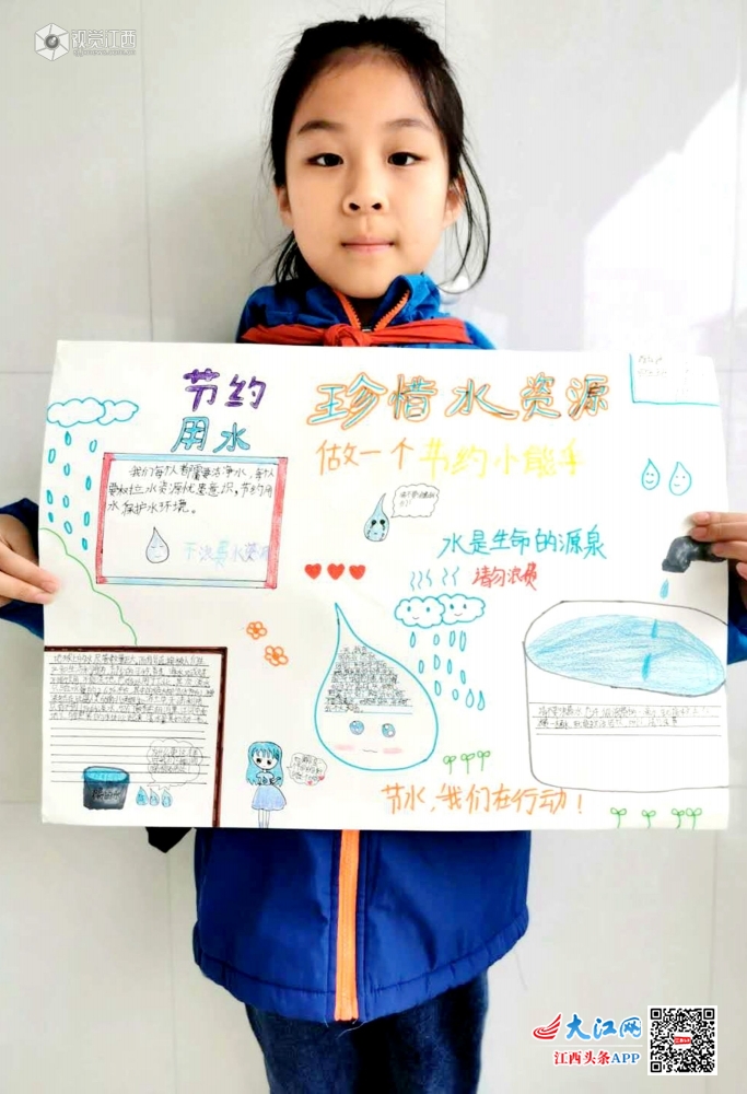 2020年3月28日,在第二十八届世界水日、第三十三届中国水周到来之际,江西省抚州市南丰县小学生在家中展示自己制作的手抄报,增强同学们节约用水、?;に试吹囊馐?。
