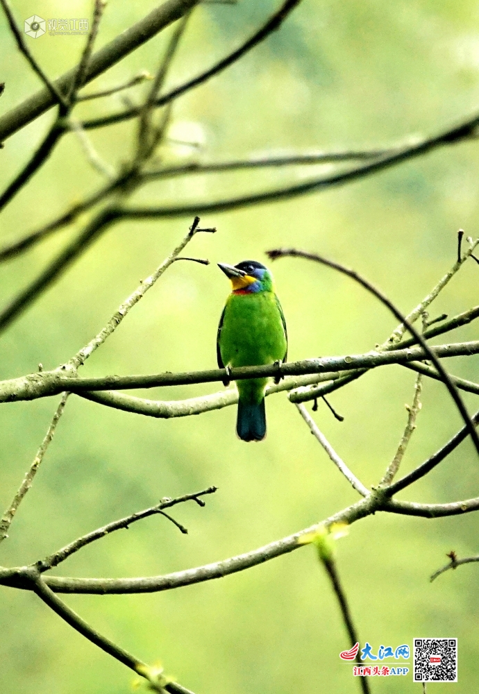 4月4日,清明时节,江西省分宜县大岗山年珠林场进入候鸟归来期,每天都有数十种候鸟在山林间觅食栖息,一些黑眉拟啄木鸟、红尾伯劳、小白腰雨燕等当地少见的候鸟也旅居此地。在大岗山树林里,黑短脚鹎、黑眉拟啄木鸟、红嘴蓝鹊等鸟儿在这里悠闲觅食栖憩,或竞相嬉戏