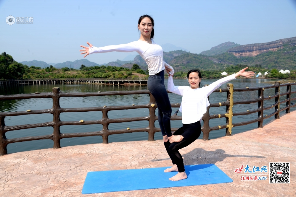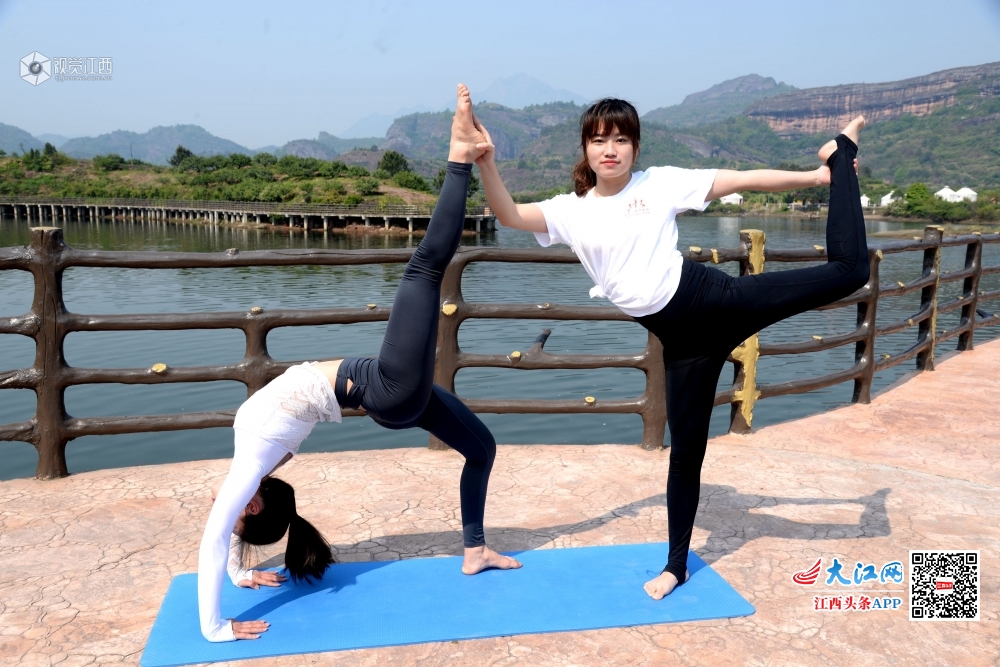 2020年4月10日,江西省抚州市南丰县观必上乐园环湖栈道边,一批瑜伽爱好者在舒缓的音乐背景下,练习“瑜伽”,优美的舞姿成为该景区一道靓丽的风景线。据了解,入春以来,南丰县观必上乐园风光如画,风景宜人,空气清新,置身其间,真正体现了回归自然的精神,吸引了不少外地游客和当地市民前来观赏、拍照、度假。