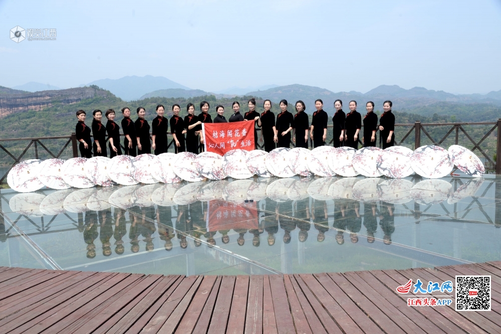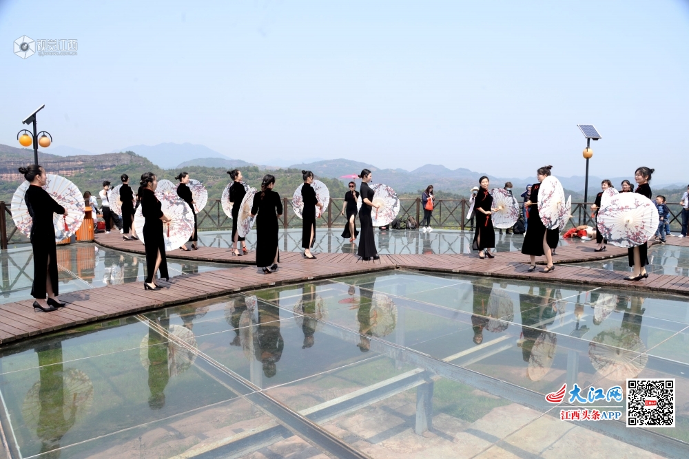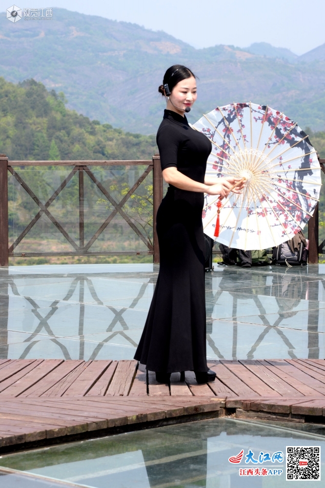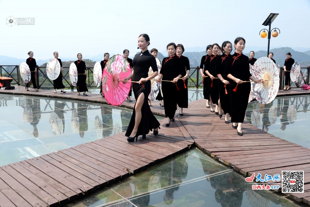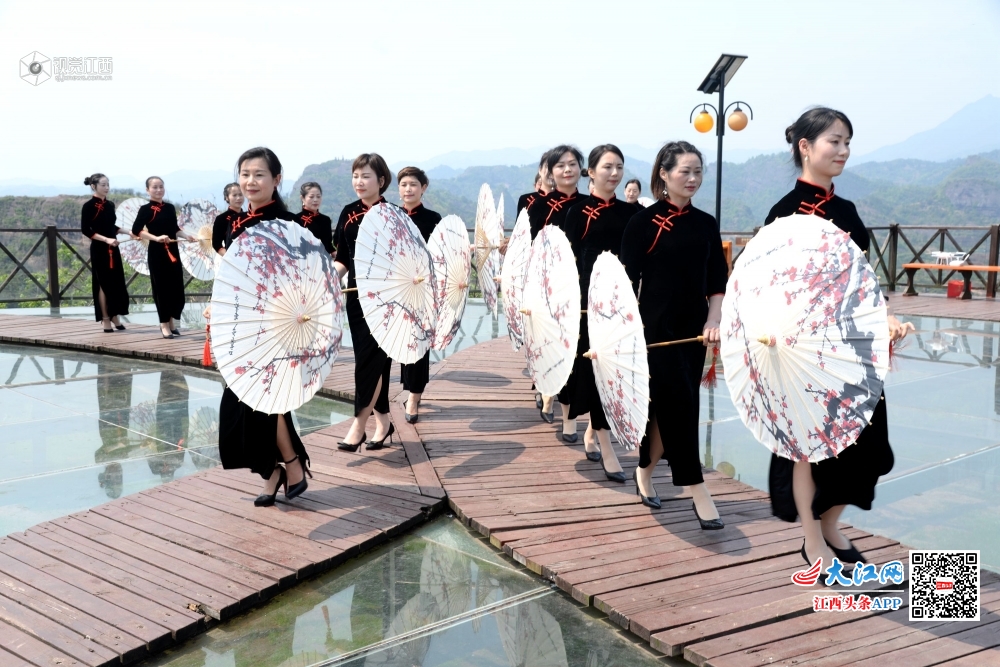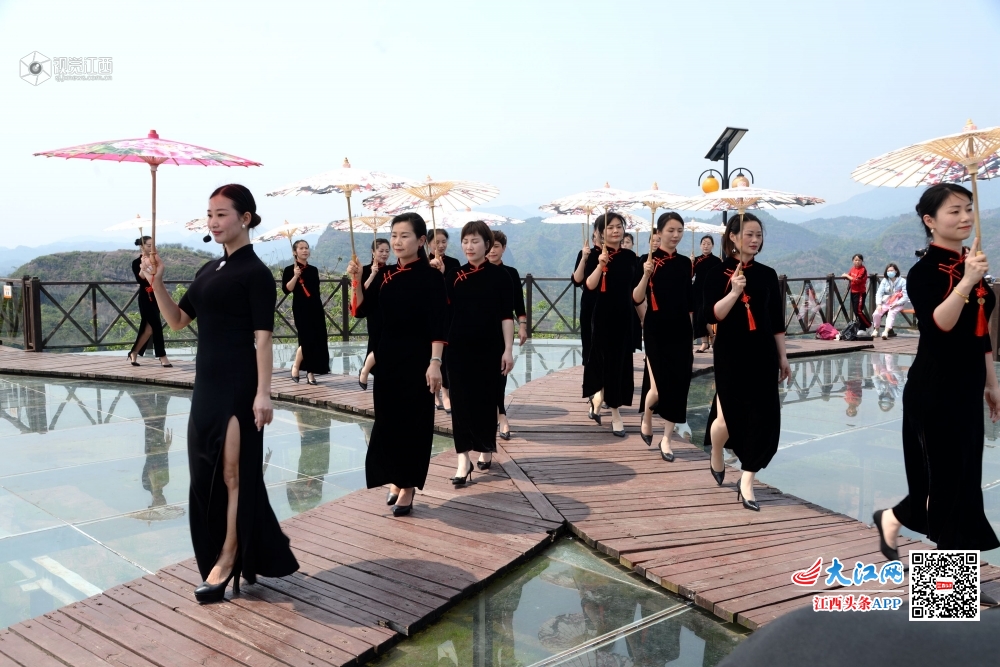 当天,南丰县举办“橘海闻花香——沁人间‘氧’生活”、“橘园游?橘花香”洗肺之旅主题活动,吸引南丰县禾韵旗袍礼仪文化协会会员走进景区秀美丽。她们撑一把柔情万种的油纸伞,着一袭黑色的旗袍,步履优雅地在观景台上缓缓走过,传统女性端庄妩媚之美与现代女性的自信向上之美如水般袭来,尽展桔乡女子的神韵与风采。
