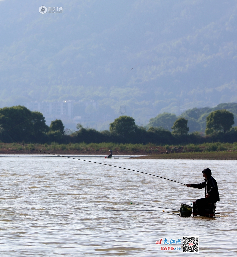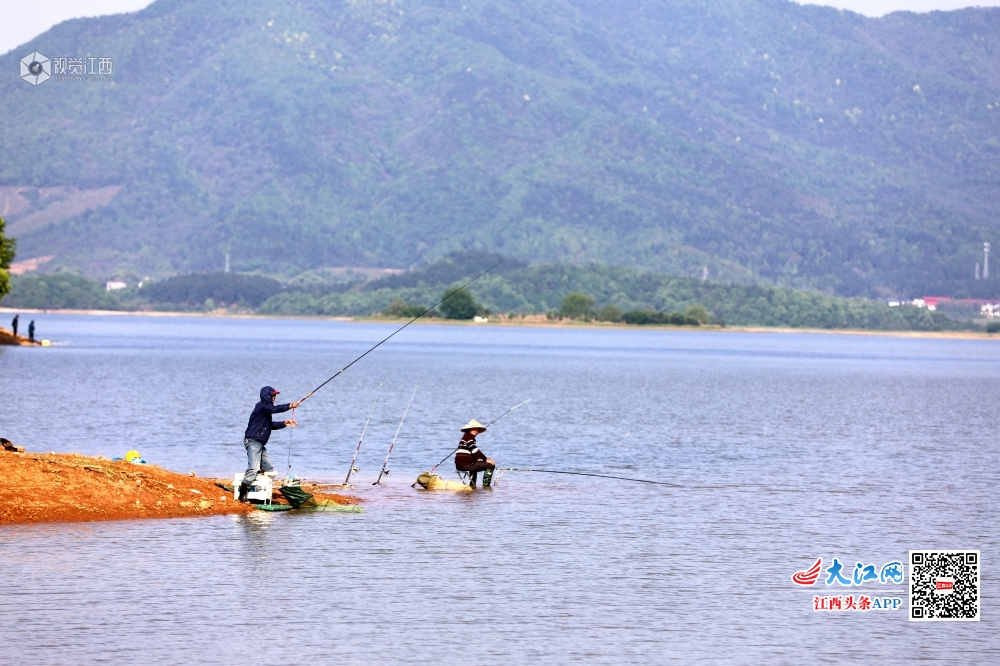 4月12日,春回渐暖,明媚的春光倾斜大地。江西省新余市分宜县钤阳湖两岸边成了垂钓爱好者的竞技场所。悠闲的垂钓与和煦的春光交相辉映,垂钓者成为景中画。