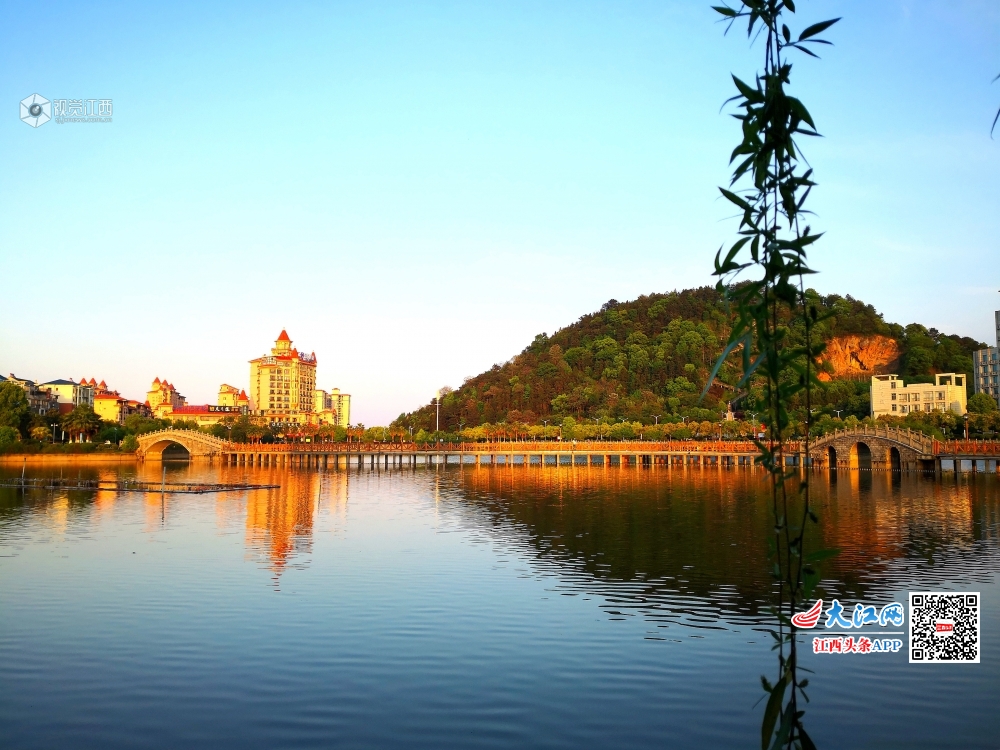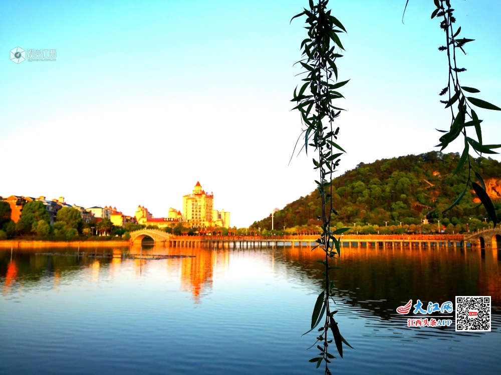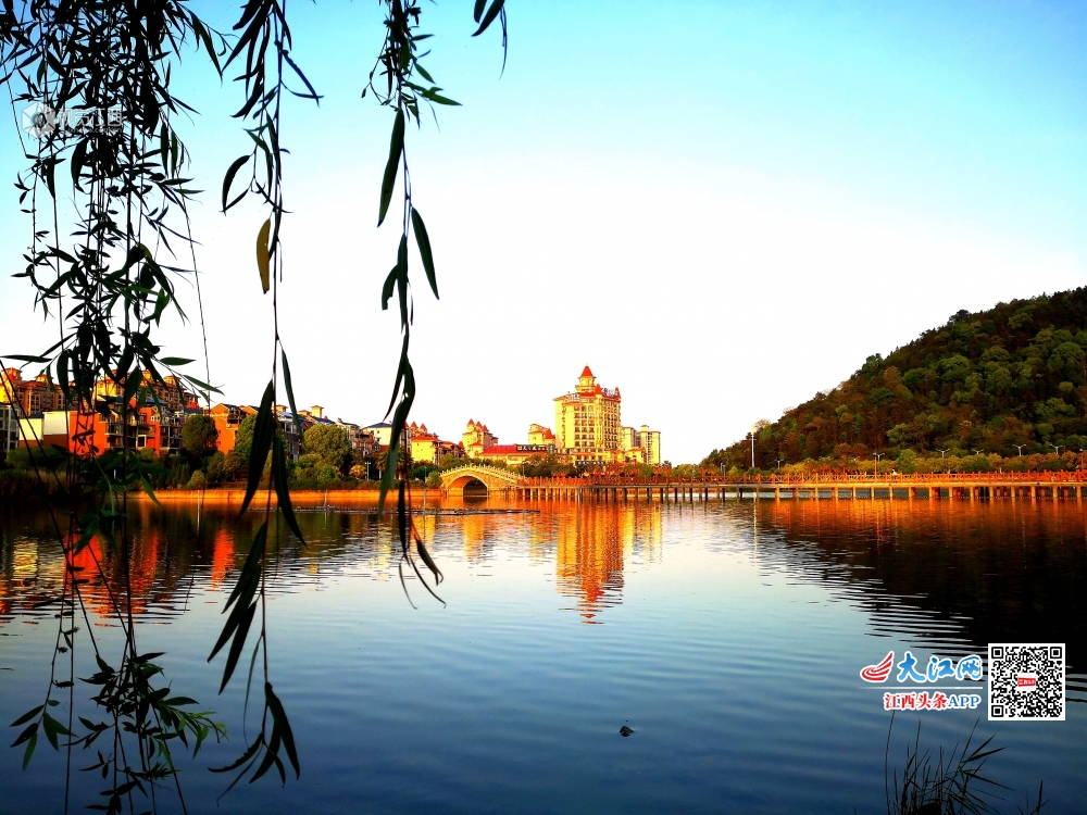 4月13日傍晚,落日余晖洒落在江西省分宜县东湖,周边建筑染上了金色,更显柔美。可谓暮春东湖,夕阳傍照。吹柳成荫,清风醉霞。错落楼影入水,钤阳拥雅韵,橘色度芳华。