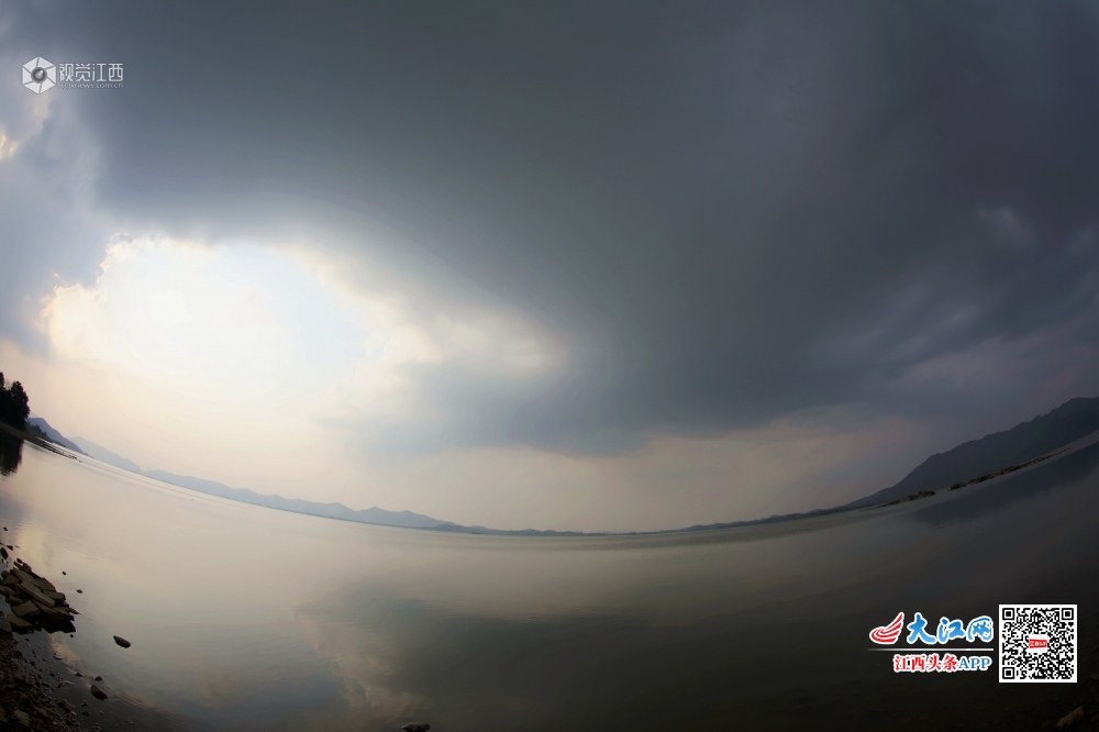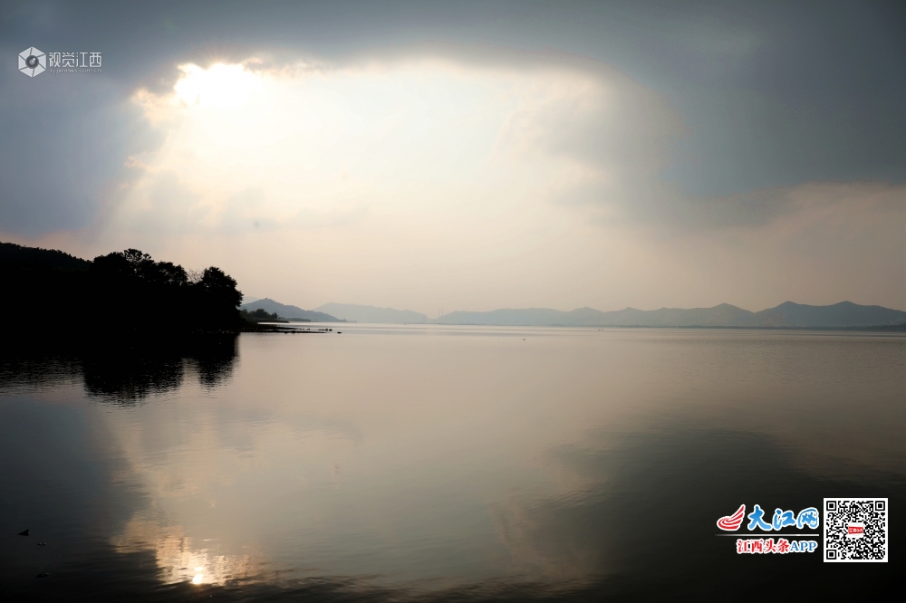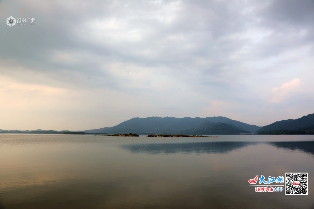 5月8日下午,江西省分宜县钤阳湖景区,天水一色,清澈的湖水被初夏的微风撩拨起轻盈的涟漪,波光粼粼,抛洒一湖春夏之交的水墨丹青。风平浪静,天空不时变化的色调坠入明镜一样的湖中,虚虚实实,勾勒出一幅心魂迷离的梦幻景像。