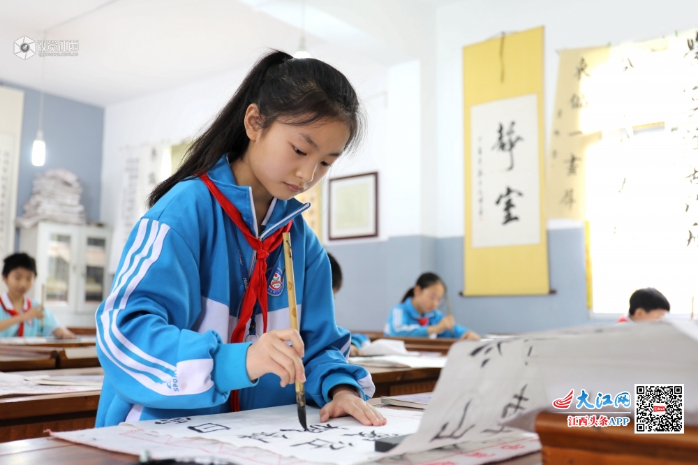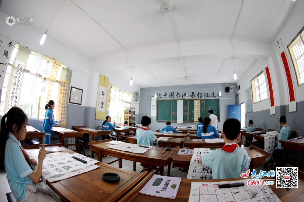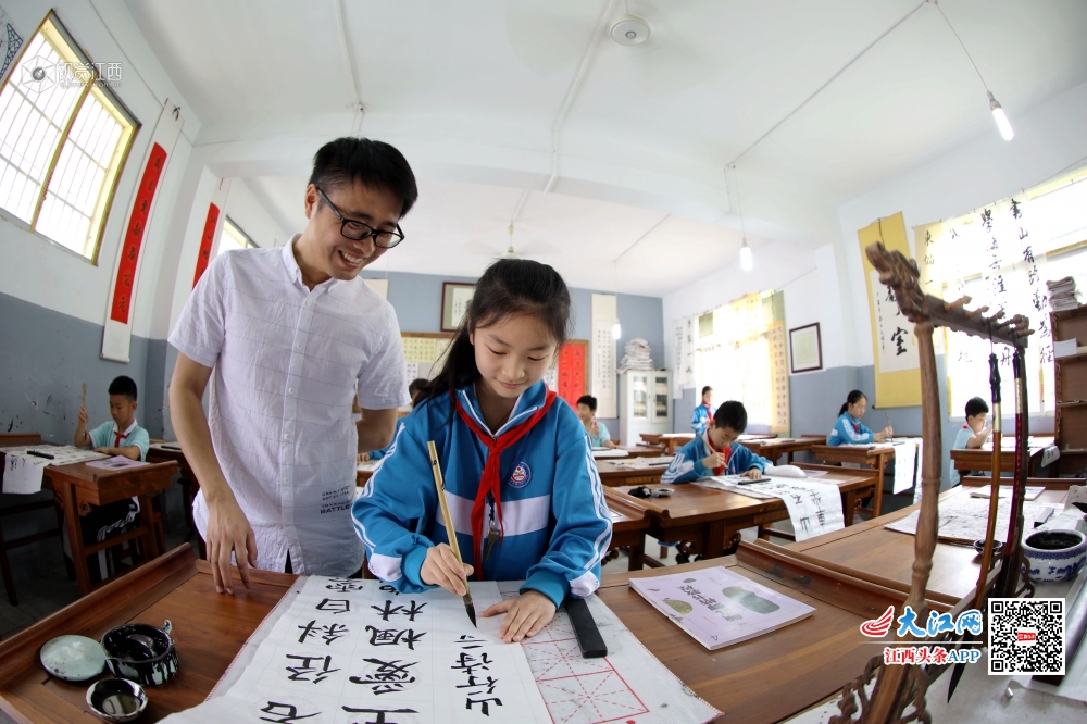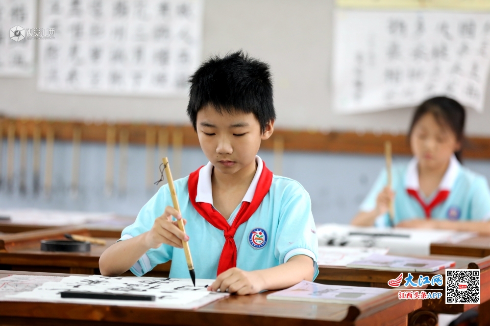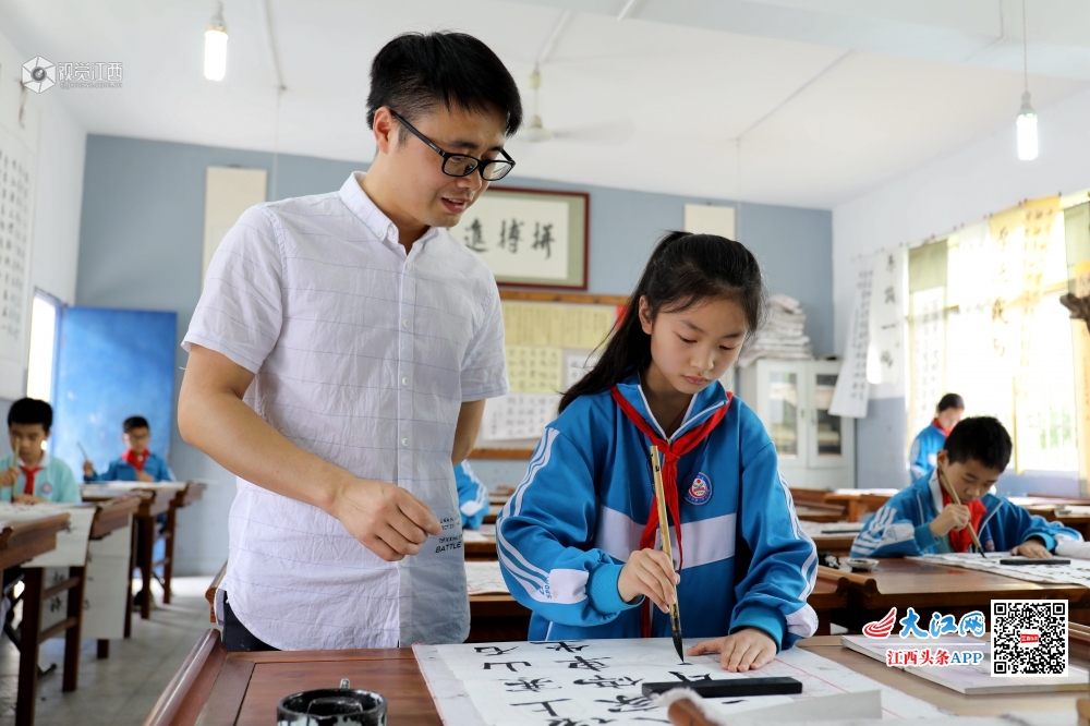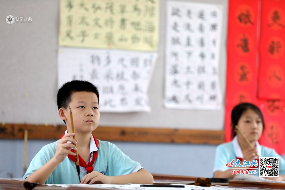 5月15日,江西省分宜县第三中心小学五年级学生正在老师的指导下练习书法,乐享复学时光。本周该县小学四五六年级的学生开学后,学校在做好疫情防控措施的同时,校园书法特色课堂也迎来复课,阔别书法课堂数月的同学们积极参加书法练习。
