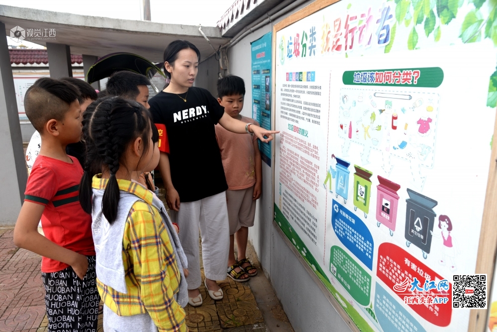 当天,是江西省南丰县小学一年级至三年级学生复学复课第一天。南丰县琴城镇水南村小学组织二年级学生来到“垃圾分类知识”宣传栏前,向学生讲解垃圾分类的知识,让学生了解垃圾分类意义和成果、垃圾分类的方法等,教育学生做一名合格的环保小卫士。