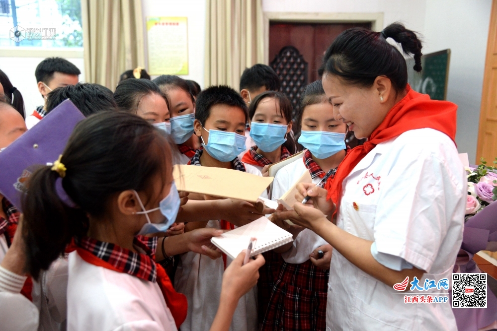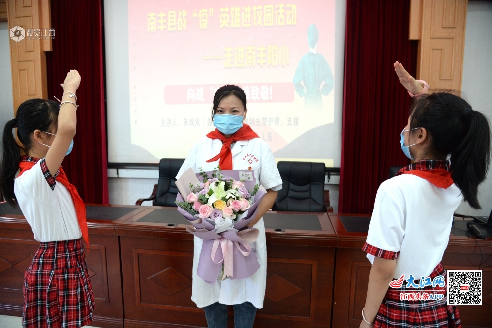 2020年5月28日,江西省抚州市南丰县开展的战“疫”英雄进校园活动走进该县教师进修学校附属小学,与同学们一起分享战“疫”一线的真实经历。