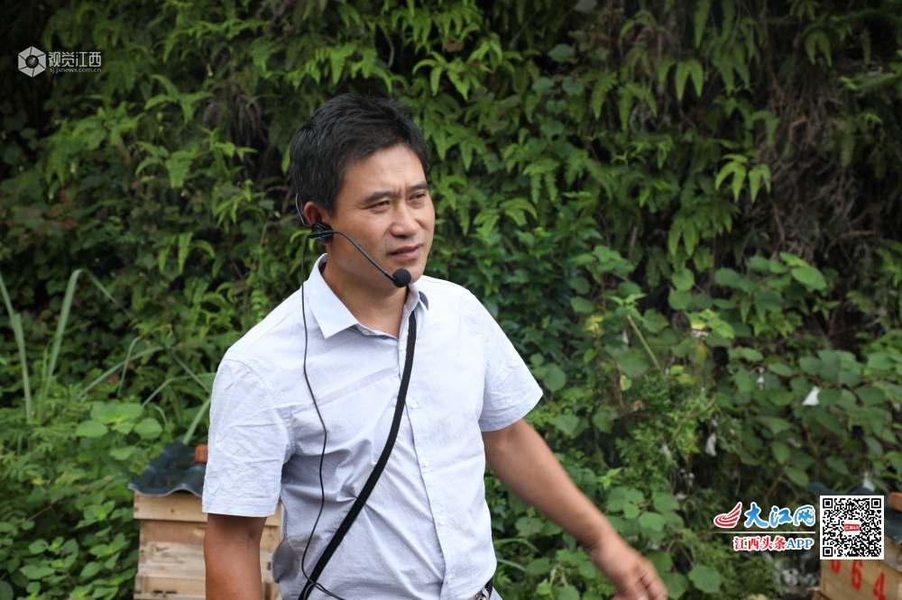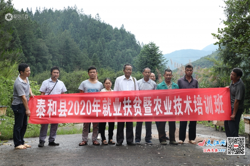 江西省泰和县老营盘镇开展就业扶贫暨农业技术培训,技术员正在蜜蜂养殖基地现场教学。