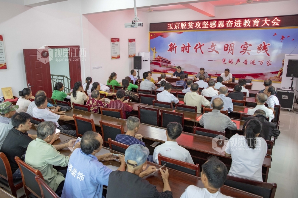 6月24日,端午节到来之际,江西庐山市白鹿镇玉京村组织全村贫困户和村民代表召开感恩奋进教育大会评选脱贫攻坚感恩奋进典型并启用“爱心超市”对他们进行奖励。 庐山市建立脱贫攻坚感恩奋进典型选树宣传常态化机制,推动扶贫扶志相结合,在全市各个行政村开展“三讲一评”评选出526名感恩奋进典型。通过树立典型进一步引导群众增强自主脱贫的斗志和决心。