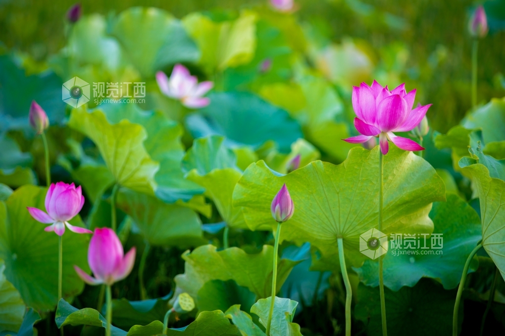 6月30日,江西省吉安市峡江县金坪民族乡南下村每年的5月下旬,整个湖面上就会形成“小荷才露尖尖角”的景色,6月荷花渐渐浮出水面,7、8、9月份进入荷叶繁茂荷花盛开的季节,满湖粉红色、洁白色的荷花把整个湖面装点得格外美丽,清纯又多情,点缀着大自然的和谐。