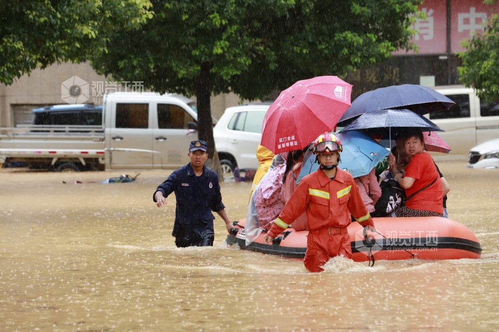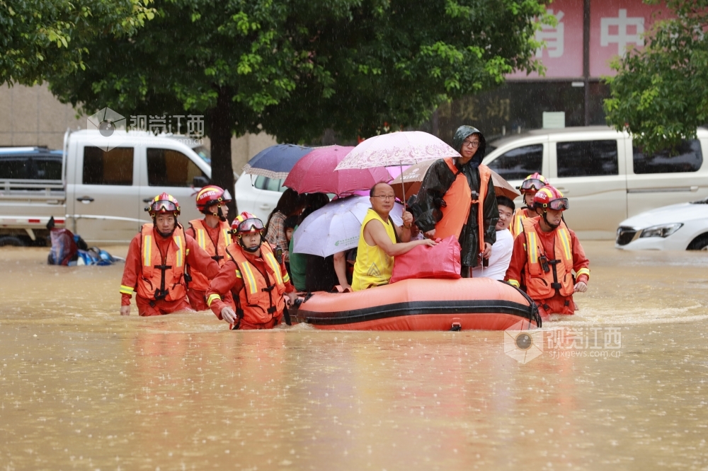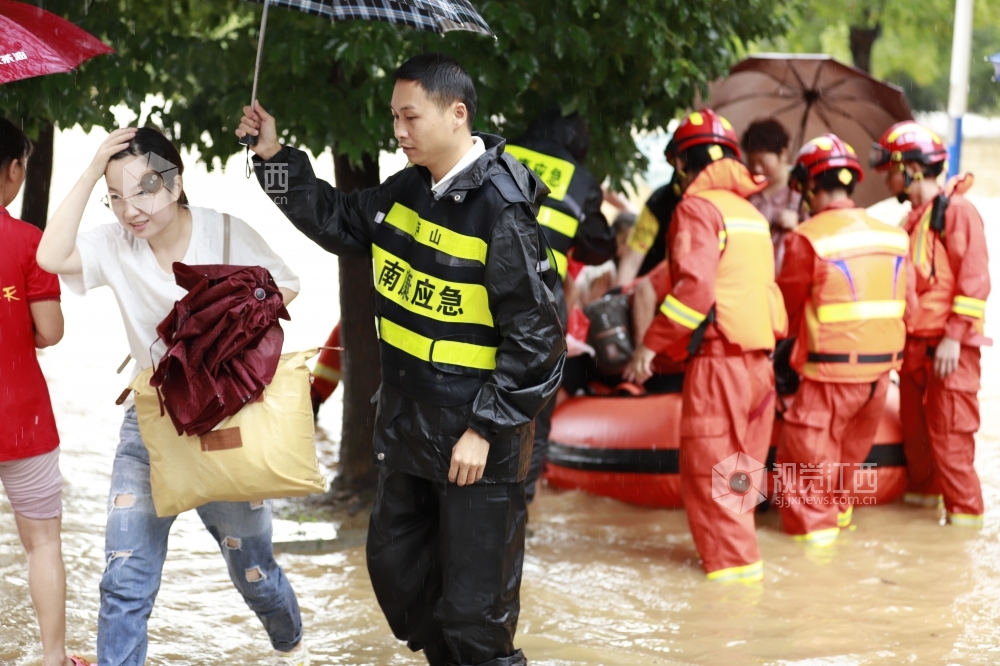 7月7日8时-8日8时江西省庐山市普降大暴雨,沿山局地乡镇出现特大暴雨,全市平均降雨量为144.6毫米,城区部分低洼地段出现内涝。城区四个社区,260余户居民受洪水围困。 当地党员干部和消防、武警立即开展应急救援,用橡皮艇将低楼层的居民进行转移。截止下午一点,困在低楼层的200余名群众基本全部转移到安全地带。