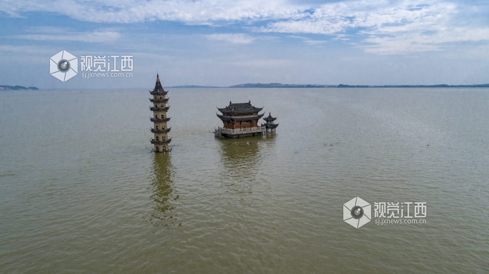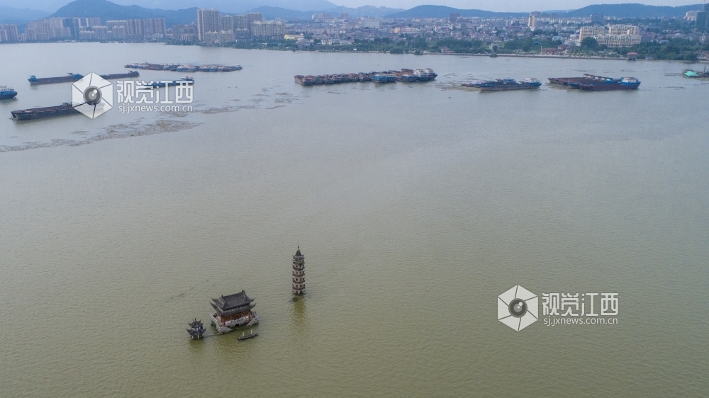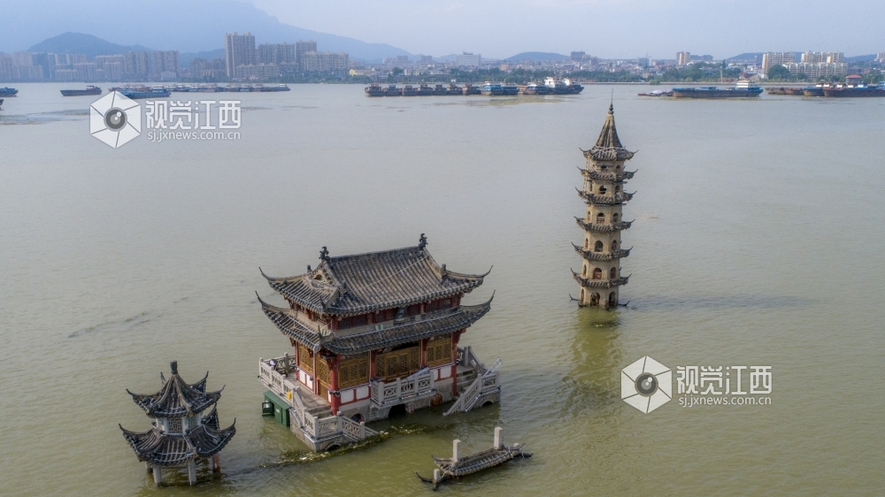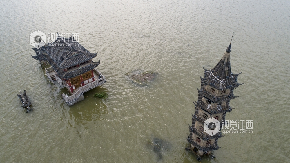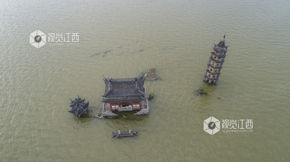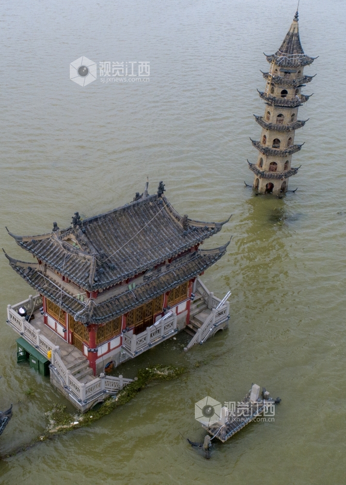 7月12日,在江西省庐山市南门码头南一千米处的鄱阳湖中间,神奇的小岛落星墩玩起了“潜水”,整个小岛的本体已经全部没入湖水之中,仅留三座建筑露在水面。 落星墩又名落星石,是江西省庐山市境内鄱阳湖区重要的地标性建筑,纵横周回大约一百多步,总面积约1800平方米。随鄱阳湖水位涨落,小岛或露或半隐,从未潜入水中。7月12日12时,鄱阳湖标志性站点星子站水位达到22.60米,超过1998年的历史水位22.52米,我国最大淡水湖水位突破有水文纪录以来的历史极值,落星墩小岛也全部没入湖水之中。