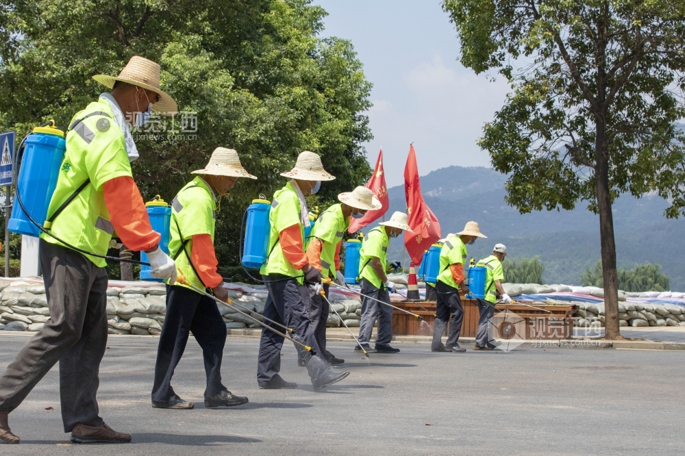 江西庐山市把人民群众生命安全和健康放在第一位,组织卫生防疫人员对洪水侵袭过的地区进行消毒杀菌作业,做到鄱阳湖水位退到哪,消杀作业就跟到哪,确保灾后无大疫。