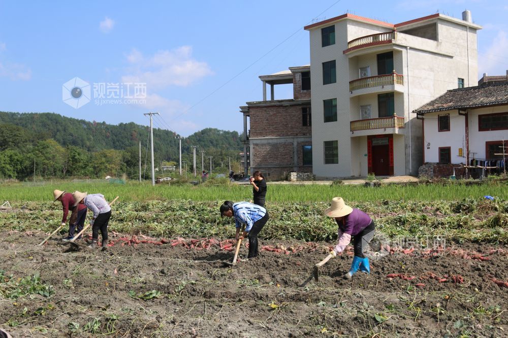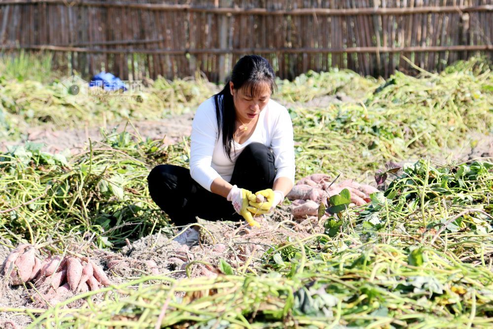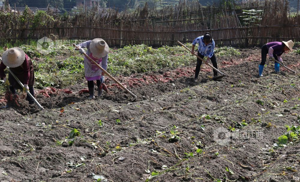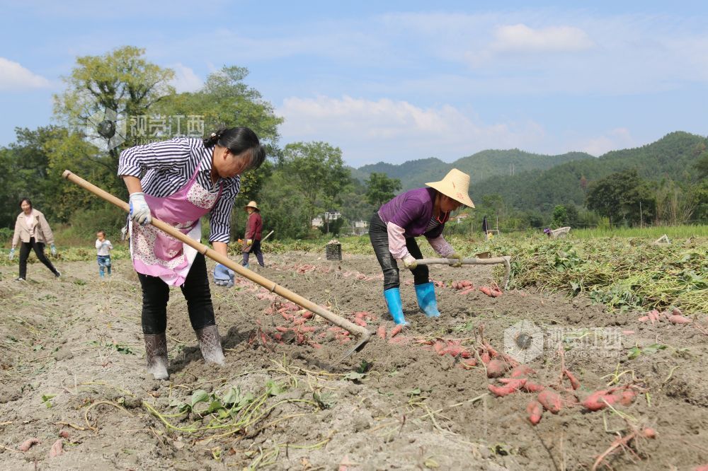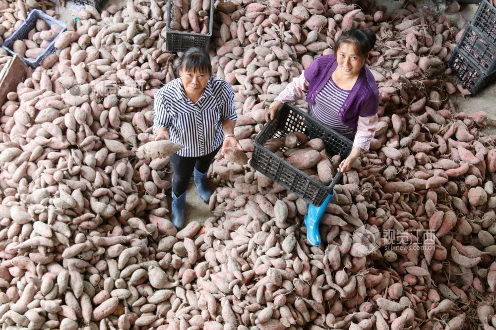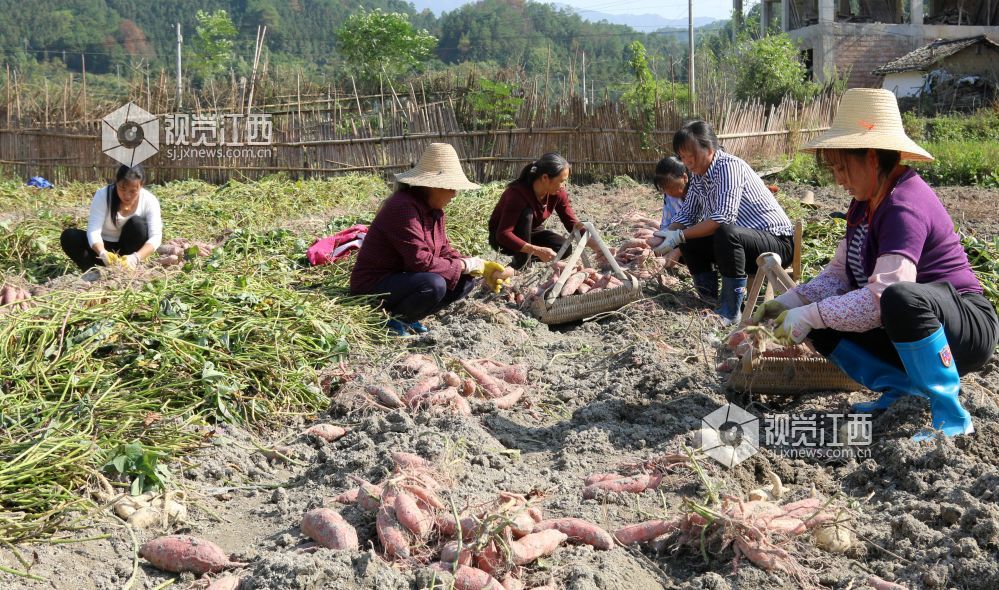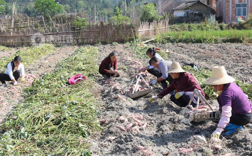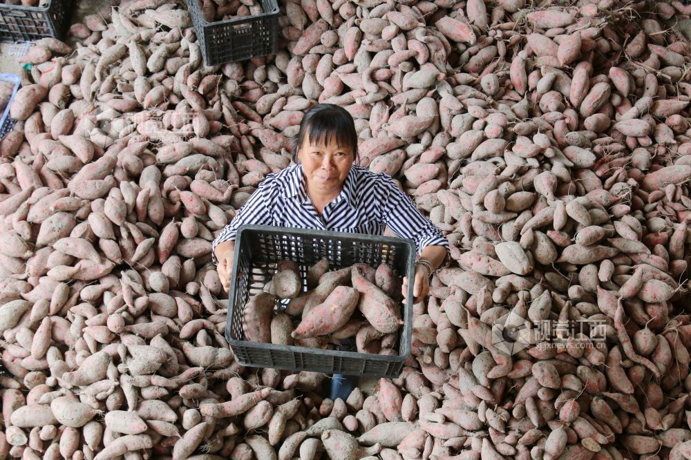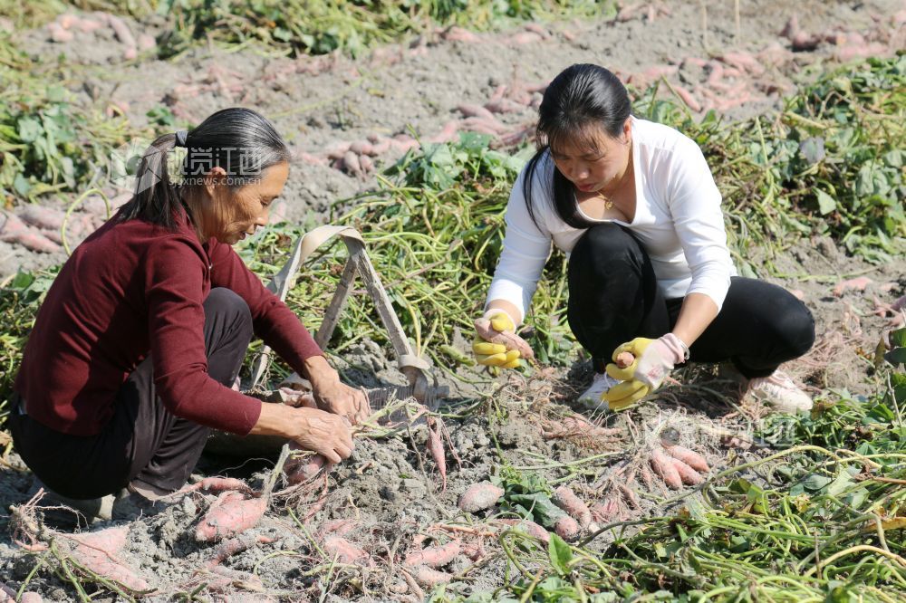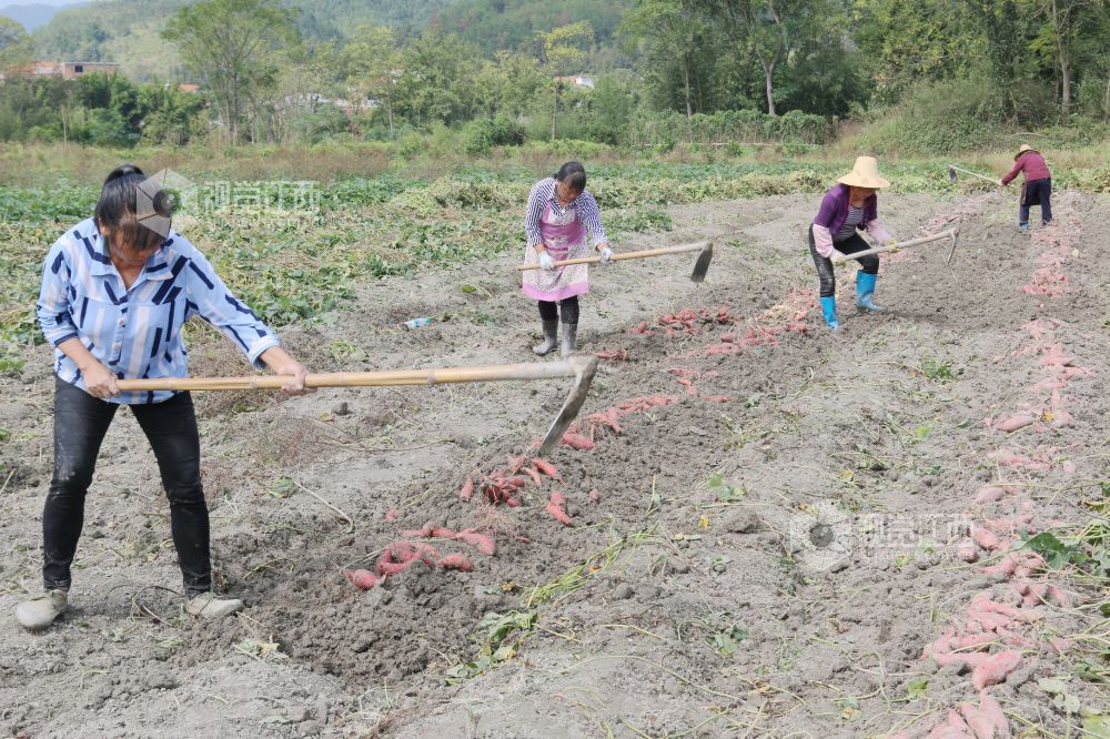 2020年10月23日,江西省遂川县左安镇东光村农民正忙着收获丰收红薯。在致富路上,遂川县左安镇东光村返乡农民曾树英流转承包30多亩土地发展红薯种植试验示范田,带动周围农户增收致富的产业来发展,改过去的零星栽培为连片大面积种植,改农家自食为市场商品,今年红薯喜获丰收,现种植户们抓住天气晴好的有利时机忙收获,田间一派繁忙景象,种植成熟的红薯正线上线下稳步销售。