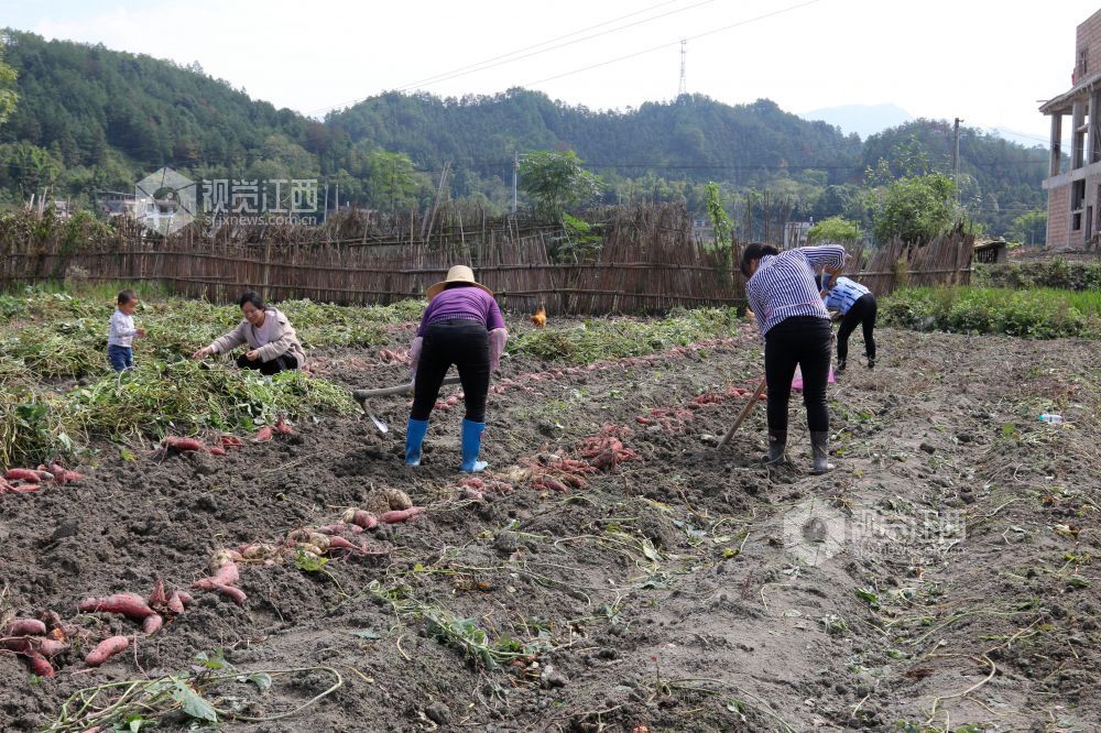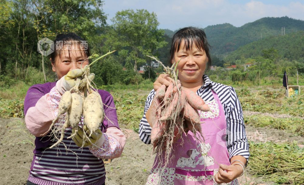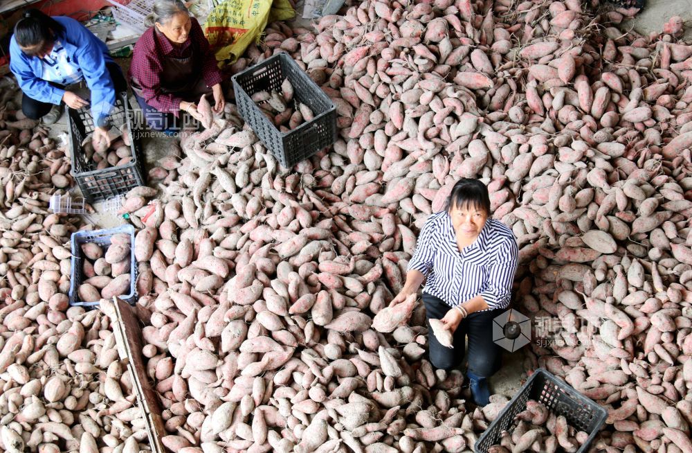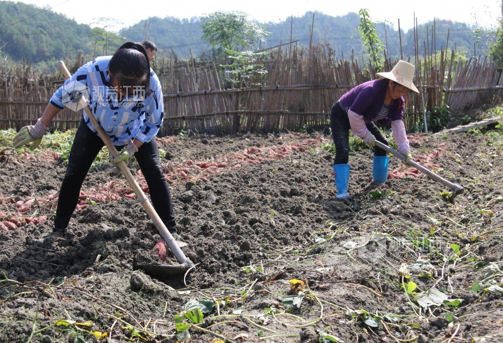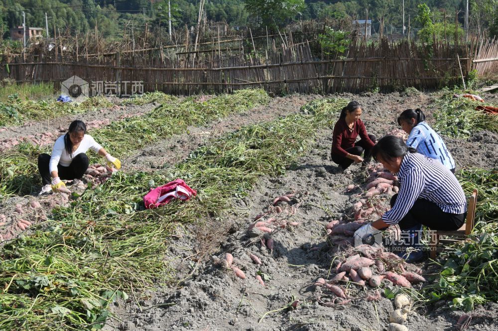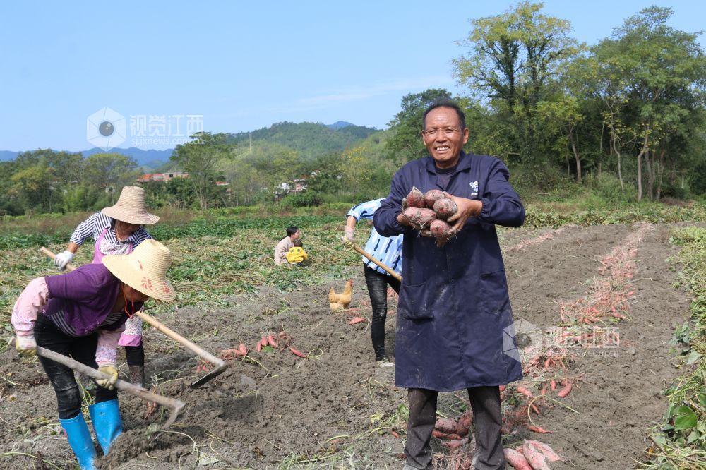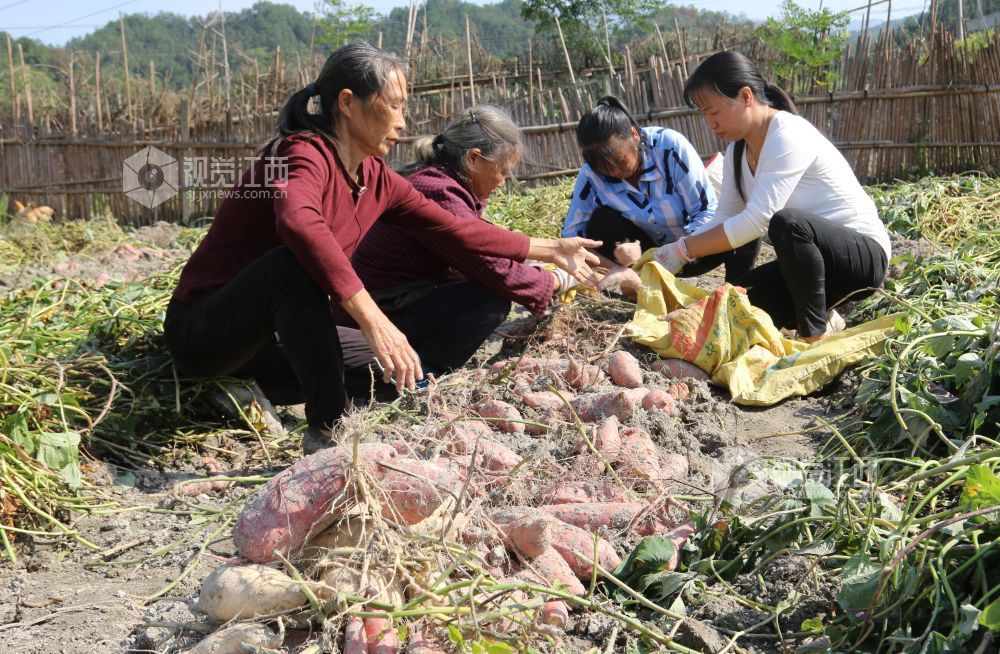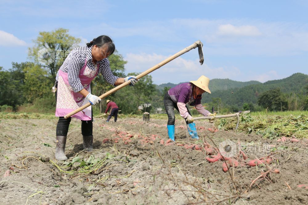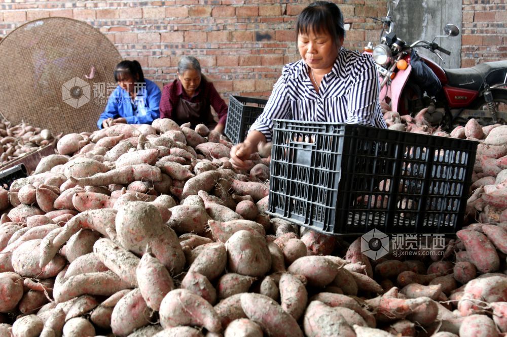 2020年10月23日,江西省遂川县左安镇东光村农民正忙着收获丰收红薯。在致富路上,遂川县左安镇东光村返乡农民曾树英流转承包30多亩土地发展红薯种植试验示范田,带动周围农户增收致富的产业来发展,改过去的零星栽培为连片大面积种植,改农家自食为市场商品,今年红薯喜获丰收,现种植户们抓住天气晴好的有利时机忙收获,田间一派繁忙景象,种植成熟的红薯正线上线下稳步销售。