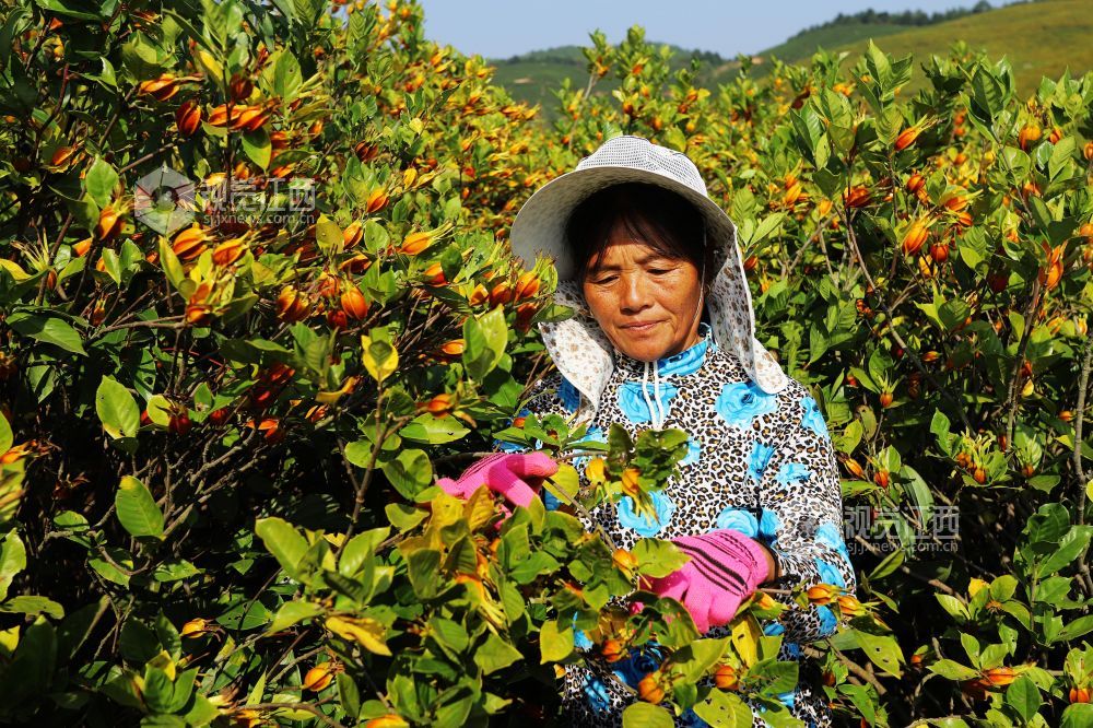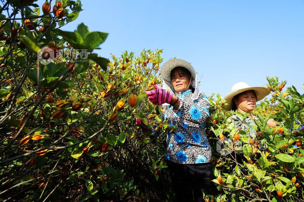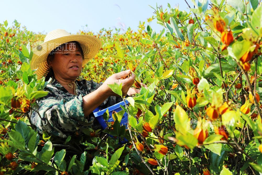该基地是就业扶贫车间,占地3000余亩,种植的水栀子为台湾引进的新品种阿里山1号。基地采取公司+基地+贫困户形式建设,全乡96户建档立卡贫困户全部入股,入股贫困户每年分红3000元,并获得劳务收入。目前,入股贫困户已全部脱贫。连日来,该基地请来的民工正紧张采摘果实,力争颗粒归仓。
