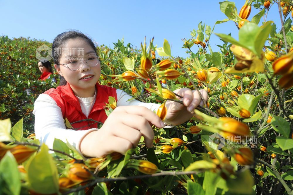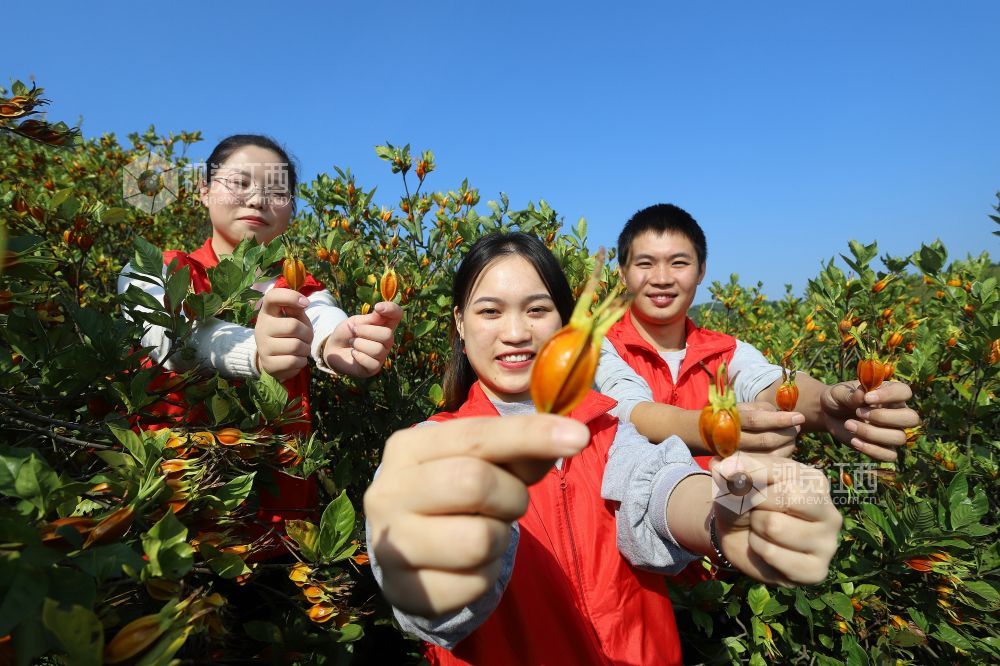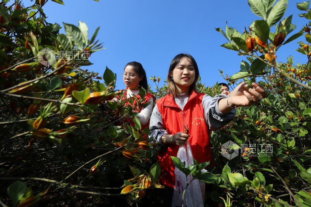 11月2日,江西省安福县甘洛乡志愿者在水栀子扶贫车间采摘水栀子果实。甘洛乡水栀子基地占地3000余亩,是全乡96户建档立卡贫困户全部入股该基地,入股贫困户每年可获股红3000元,并获得劳务收入。目前,该扶贫车间的水栀子果实进入成熟期,乡新时代文明实践中心志愿者自发组成帮工队前往帮助采摘,以缓解采摘劳力不足。