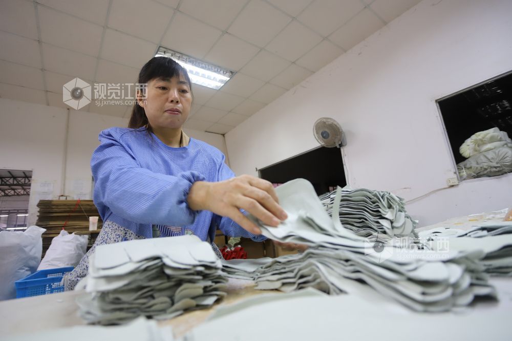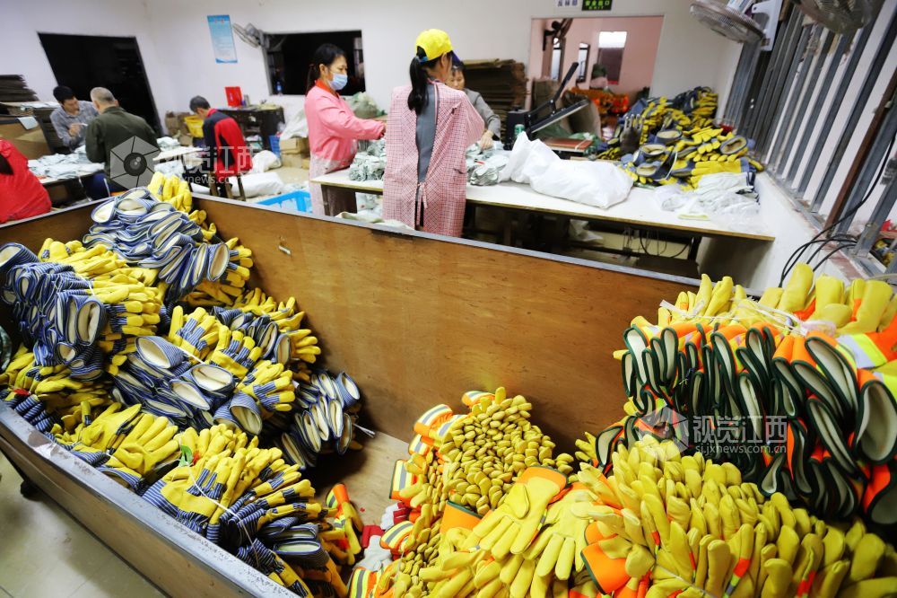 11月3日,江西省安福县寮塘乡一家劳保制品公司扶贫车间工人在赶制外贸订单。该公司扶贫车间安排当地200余名劳动力就业,其中建档立卡贫困户6人,产品全部销往欧美国家。今年以来,安福县认真抓好“六稳”“六保”工作,出台了一系列应对疫情稳定外贸增长的政策措施,县人才服务与就业局等部门不断创新服务方式,拓展服务内容,采取委托招工、联合招工、奖补招工等方式强化稳工招工力度,推动扶贫车间有序复工复产,县内外贸企业复工复产加速,并实现外贸出口逆势上扬。