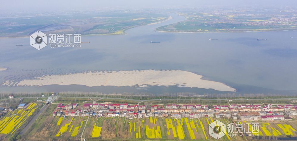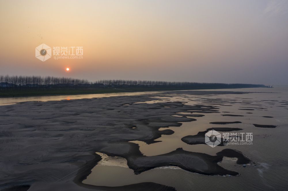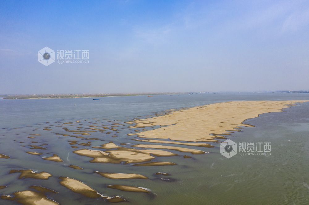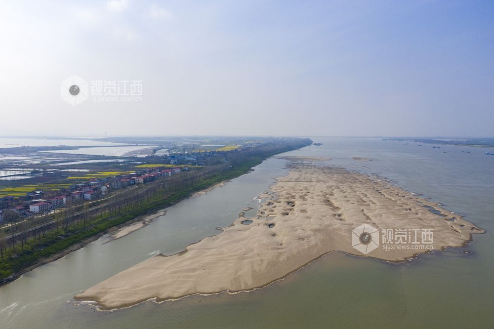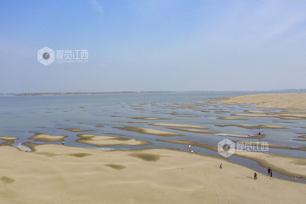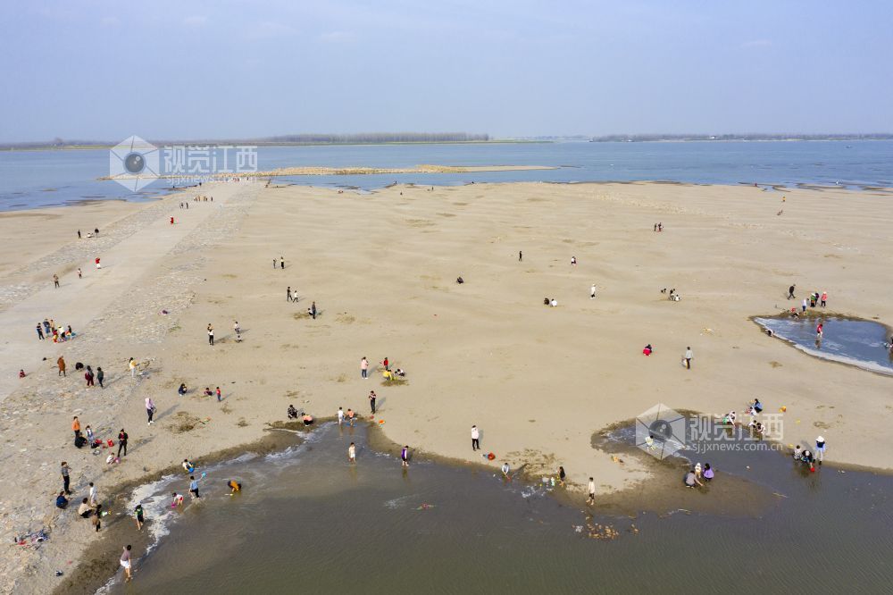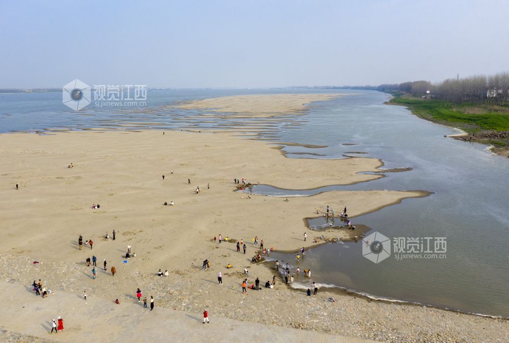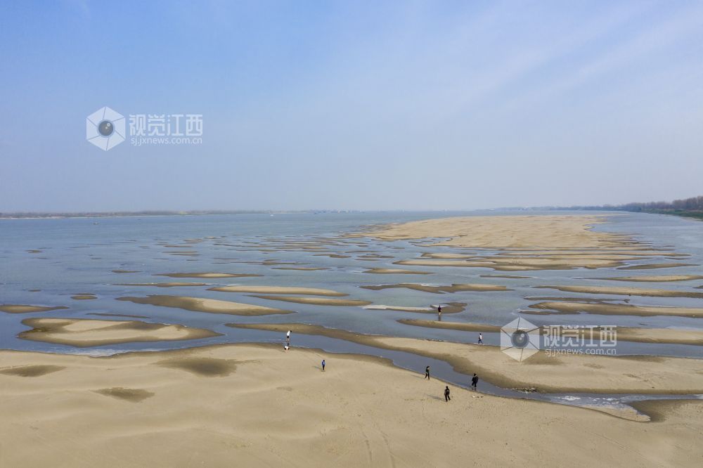 由于长江水位走低,当前又正值枯水期,导致江西省九江市柴桑区城子镇长江段此处部分河床裸露水面,裸露的江边沙滩变成市民游玩打卡地,吸引了许多市民前来游玩。